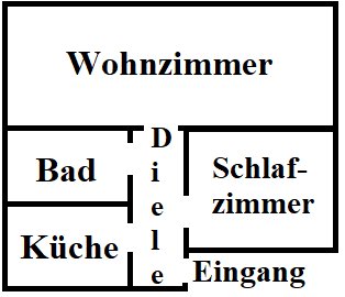 Gesamt: 2 Zimmer + Küche + Diele + Bad = ca. 54 qm