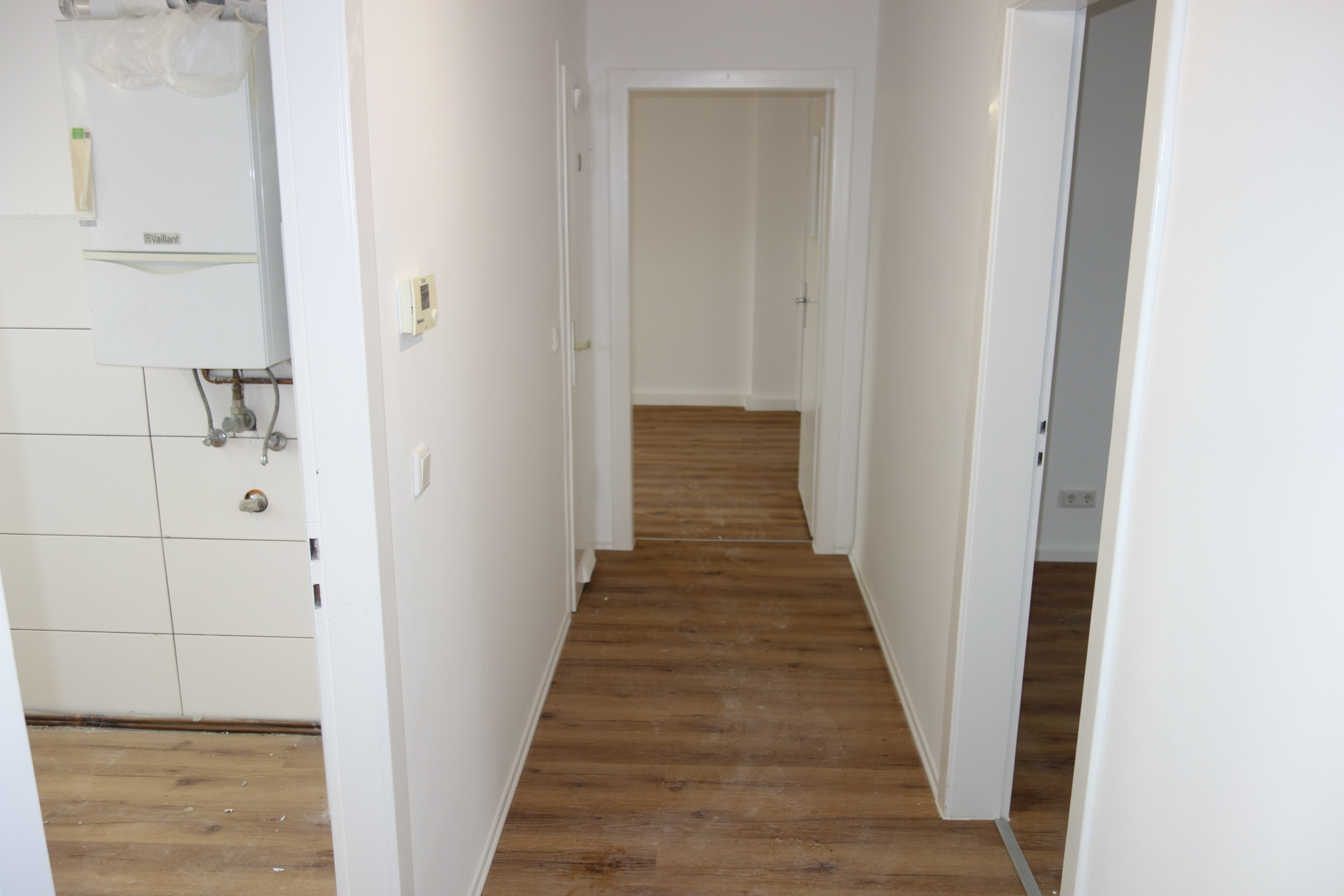 In der kompletten Wohnung wurde neuer Laminatboden verlegt, die Elektrik ist erneuert worden sowie Küche und das Bad sind neu gefliest worden. Im Badezimmer wird zurzeit noch die Toilette und das Waschbecken erneuert. Außerdem ist die Wohnung vollständig weiß gestrichen worden (Decken und Wände).