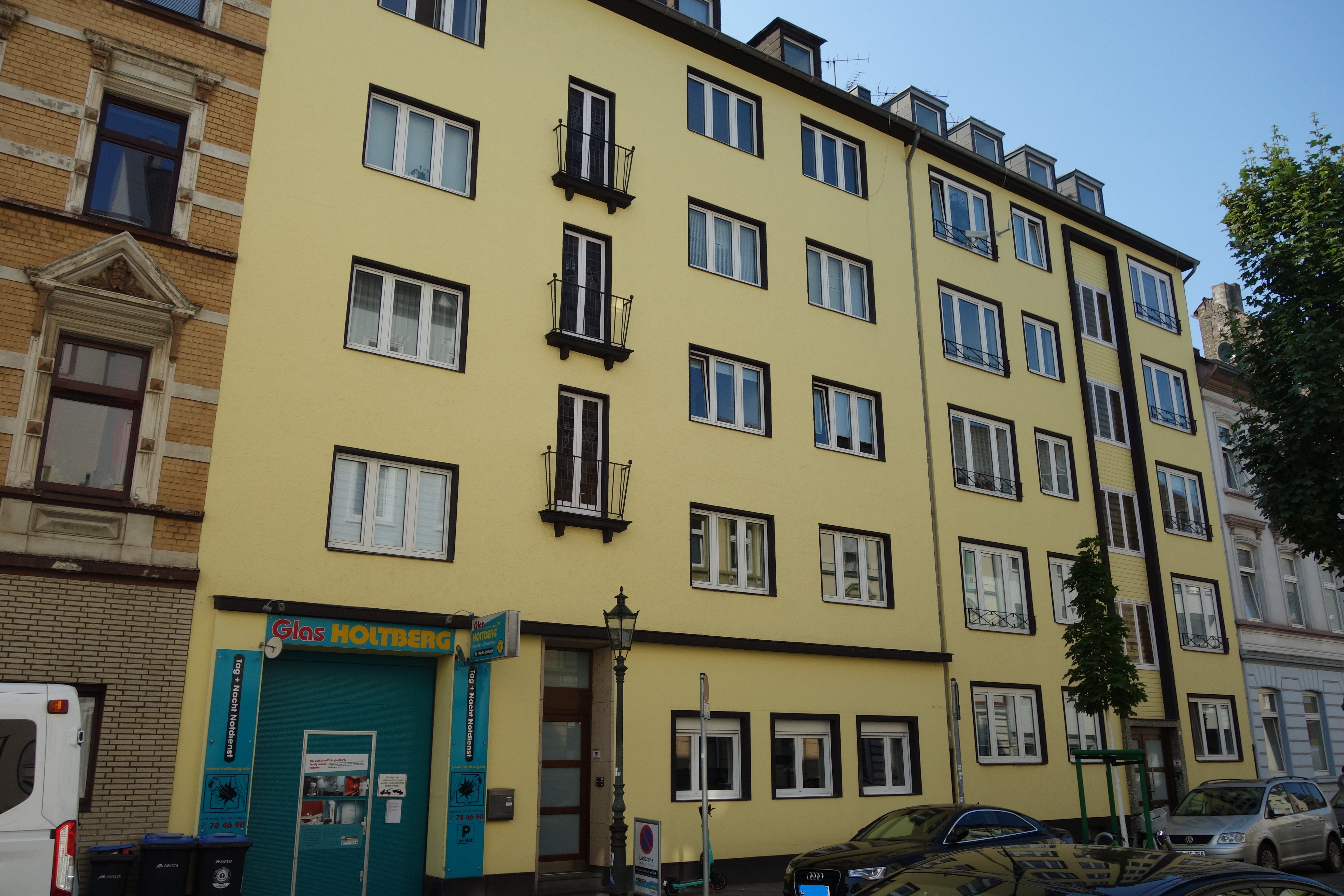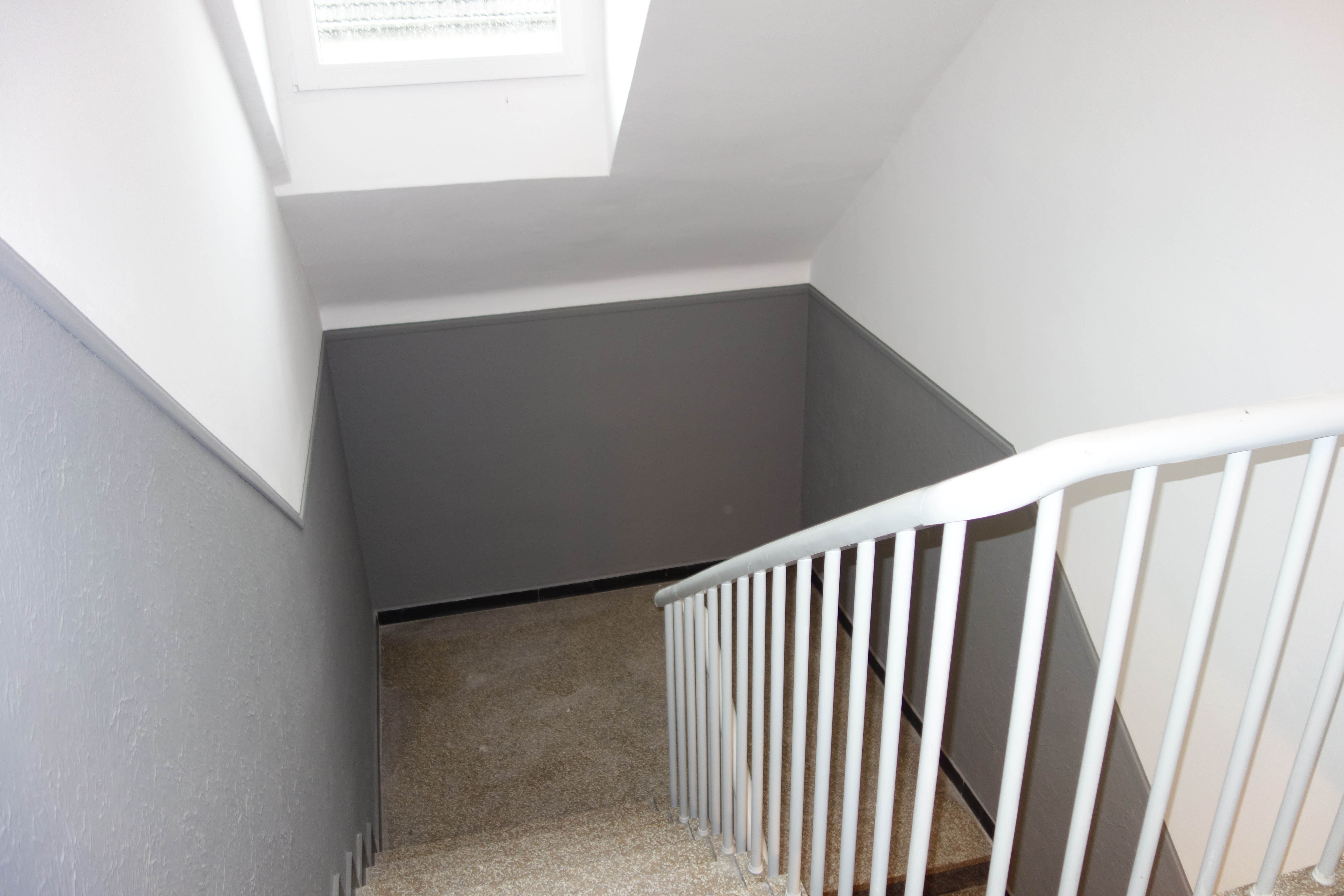 Die Wohnung befindet sich in einem gepflegten Mehrfamilienhaus, welches ca. 1920 errichtet und fortan modernisiert wurde. Die Kunststofffenster sind doppelt isoliert. Das Haus verfügt über ein Satteldach. Das gepflegte Steinbodentreppenhaus ist an den Wänden verputzt und hell gestrichen. Die Wohnung befindet sich in der 5. (obersten = Dachgeschoss) Etage, ohne Aufzug. Als Heizsystem liegt eine Gas-Etagen-Heizung vor. Für die Allgemeinheit gibt es einen Trockenspeicher. Die eigenen Geräte (Waschmaschine und/oder Wäschetrockner) können innerhalb der Wohnung (Küche) aufgestellt werden. Zu der Wohnung gehört ein eigener Kellerraum.