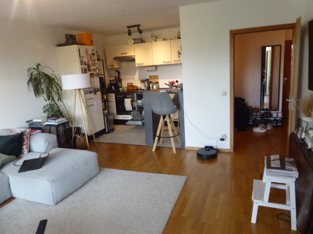 Es handelt sich hier um eine sehr moderne, sanierte Wohnung in ruhiger Lage mit Ausblick ins Grüne. Das sanierte, modern weiß geflieste Badezimmer hat eine große, bodentiefe Dusche. Die halboffene Küche zum Wohnzimmer ist gefliest. Hier kann (muss natürich nicht) von den Vormietern für € 1.500,00 übernommen werden (Kühlschrank, Spülmaschine und vier Monate altem Ceranfeld). Weiteres Mobilar kann auch komplett oder teilweise oder gar nicht übernommen werden: siehe "Fotos"!. In den restlichen Räumlichkeiten wurde Parkett velegt. In der Diele befindet sich ein zweckmäßiger, großer Einbauschrank. Eine Gegensprechanlage ist installiert. Die Wohnung wird unrenoviert jedoch in einem sehr gut erhaltenen Zustand übergeben und kann ab sofort oder später gem. Absprache angemietet werden. Prägnant ist das große Wohnzimmer mit dem großen Balkon und der Aussicht ins Grüne.