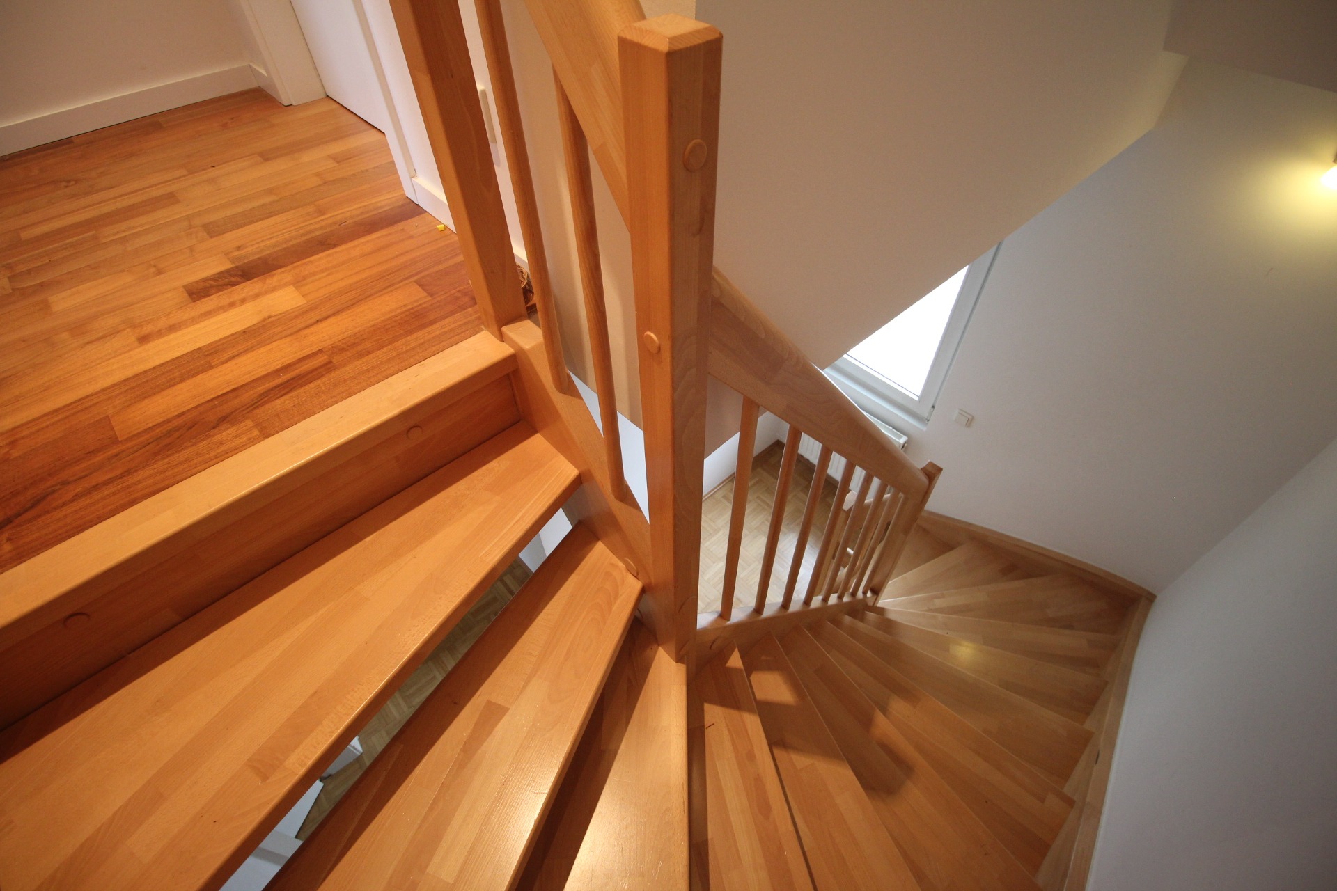 Alle Etagen sind über ein überarbeitetes Treppenhaus mit Holztreppen – zum Dachgeschoss hin erneuert – erreichbar. Alle sanierten Bäder (Wannenbad inkl. Bidet in der 1. Etage, Duschbad im Dachgeschoss, G-WC) befinden sich in einem modernen, zeitgemäßen Zustand. Die Diele und die Küche (mit Fenster) im Erdgeschoss sind gefliest. In allen restlichen Räumlichkeiten liegt Parkettboden. Im Wohnzimmer besteht ggfs. die Möglichkeit, einen offenen Kamin nachträglich einzubauen. Die Badezimmer verfügen alle über ein Fenster. Im Rahmen der Sanierungen wurden auch diverse Down Lights eingebaut. Ein Highlight ist u. a. das ausgebaute Dachgeschoss inkl. Zugang über die Holztreppen.