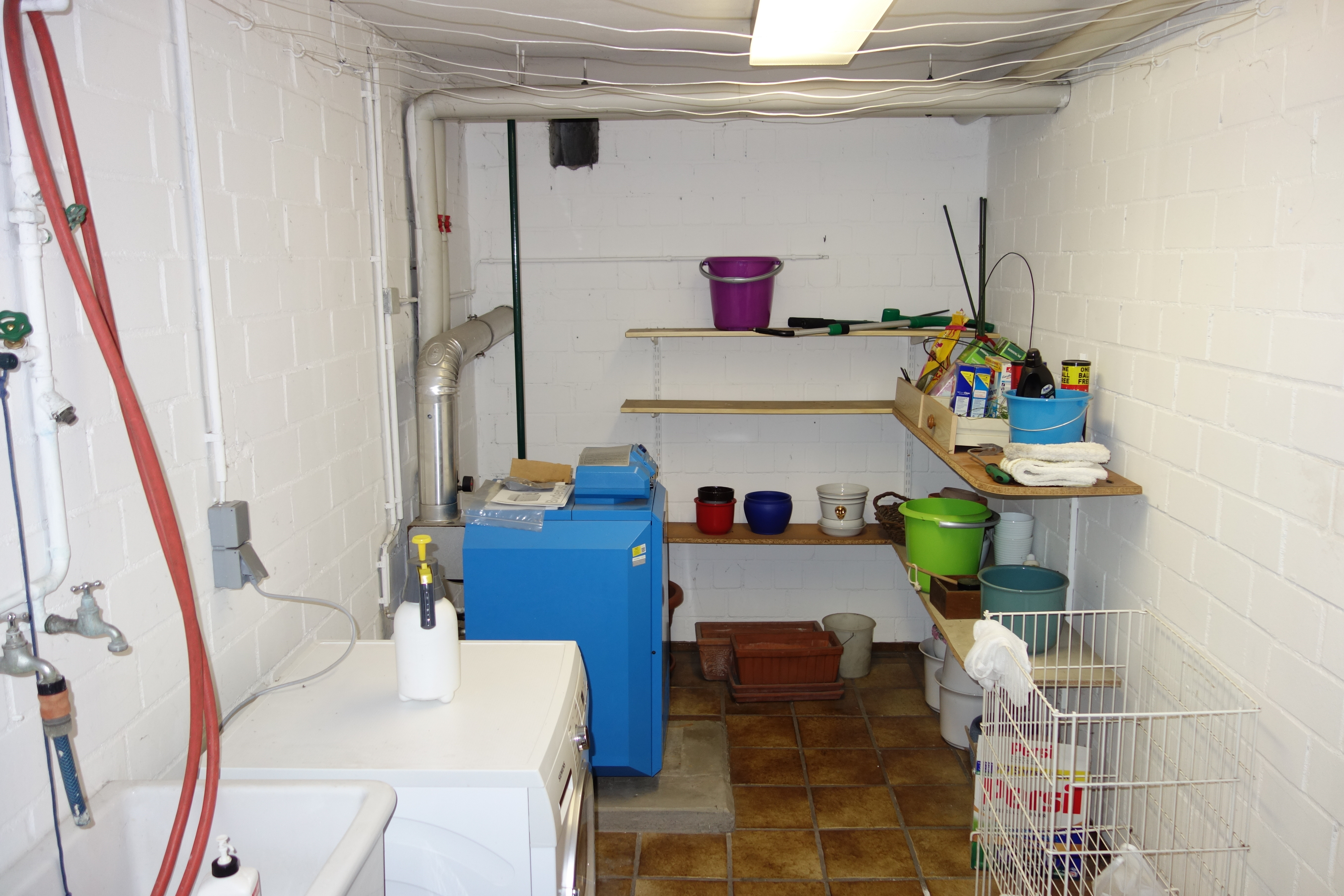 Neben dem Heizungsraum gibt es im Keller noch einen Vorratsraum, eine Toilette, einen sehr geräumigen Hobbyraum / Partykeller sowie einige weitere Einbauten.