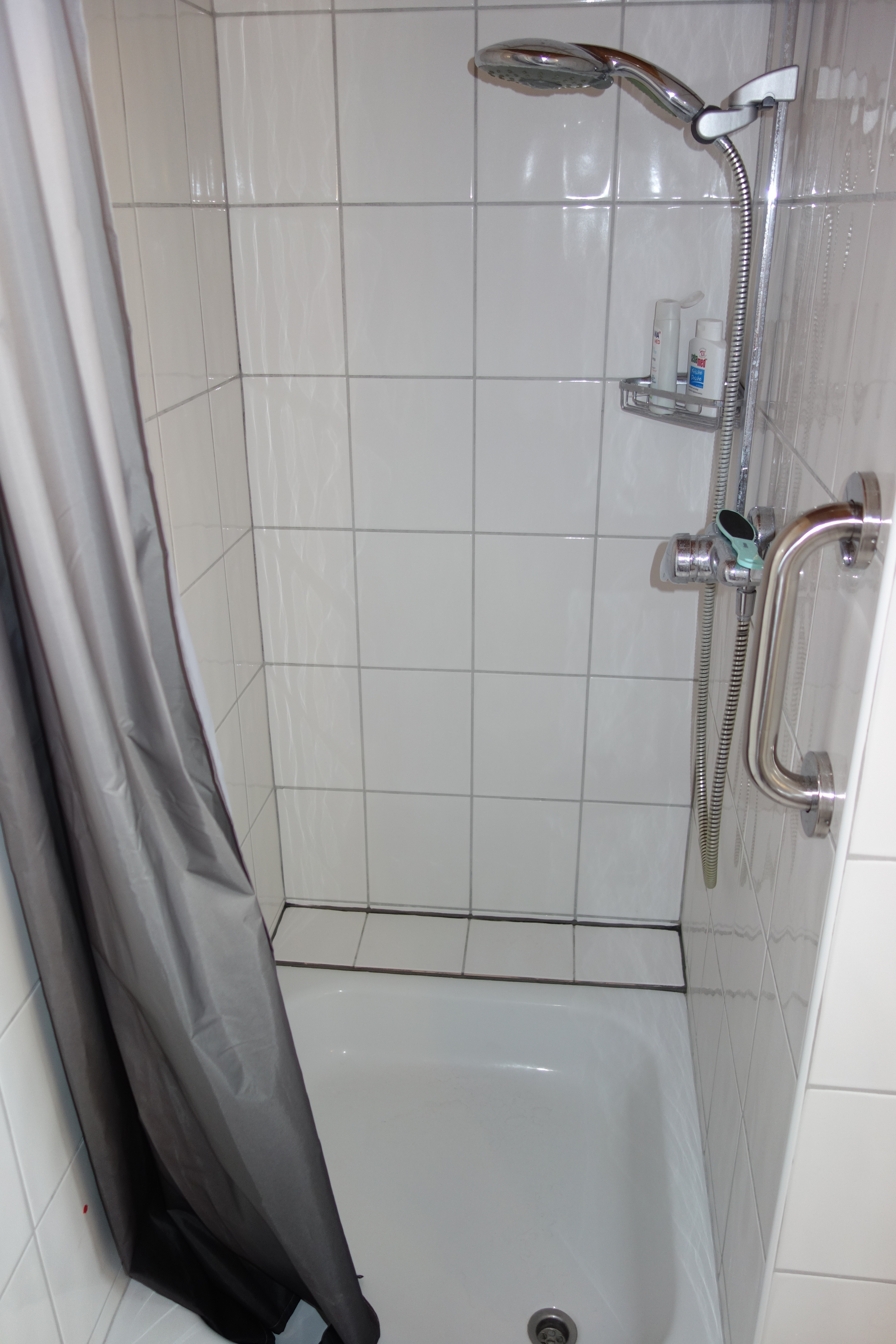 - Ausstattung des Bades Dusche, Badewanne, Fenster