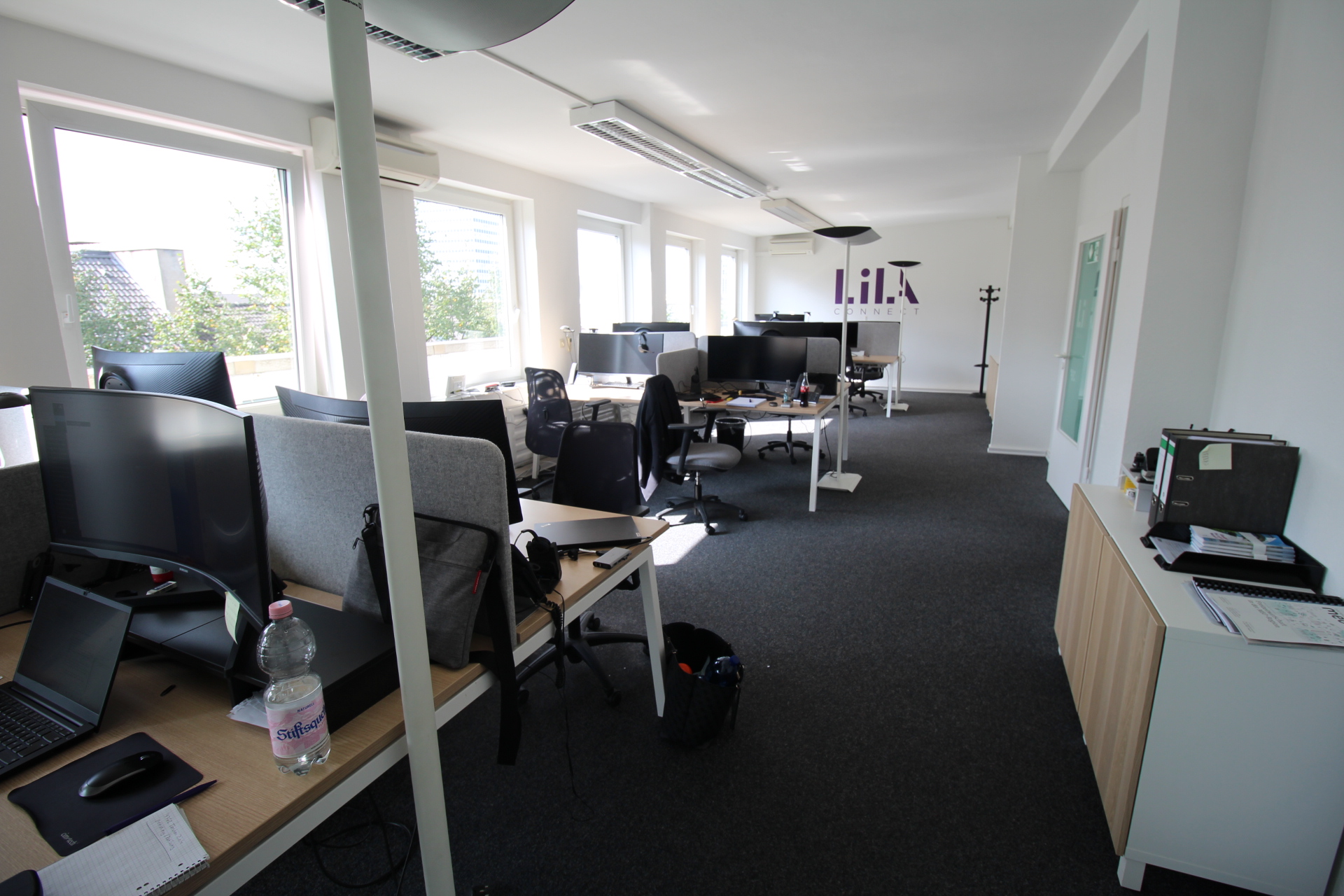Alle Räumlichkeiten sind mit Teppichboden ausgelegt, mit Ausnahme der WC´s. Die Räume sind sowohl separat vom Flur aus begehbar als auch teilweise untereinander. Grundsätzlich besteht die Möglichkeit, die Raumaufteilung individuell zu verändern. Aktuell lassen sich die Räume wie folgt beschreiben (siehe Grundriss): Bei Raum 7 handelt es sich um ein Großraumbüro und ist somit der größte Raum der Einheit und bietet noch einen Durchgang zu dem verglasten Raum 6. Raum 4 wird derzeit als u.a. als Serverraum genutzt. Eine Pantryküche kann kostenfrei übernommen werden. Die 2 WC´s (getrennt für Damen und Herren) sind modern weiß gefliest und verfügen jeweils über eine Toilettenkabine. Eine Gegensprechanlage ist installiert. Die Räumlichkeiten werden im teilrenovierten Zustand übergeben. Eine Anmietung ist ab sofort oder später gem. Absprache möglich.