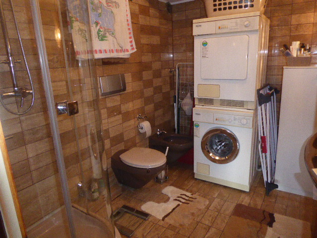 Die Küche, mit Fenster, ist gefliest. Beide Duschbadezimmer sind ebenso gefliest/gekachelt; eins wurde zwischenzeitlich teilsaniert und das andere befindet sich noch in einem dem Baujahr entsprechenden Zustand. Die restlichen Räumlichkeiten sind komplett mit Laminat ausgelegt. Decken und Wände sind gestrichen. Die Terrasse ist mit Bodenplatten ausgelegt. Insgesamt hinterlässt die Wohnung einen absolut gepflegten Eindruck. Das Mietverhältnis mit den jetzigen Mietern ist mehr als 30 Jahre. Die Elektrik wurde seit dem Baujahr nicht modernisiert, was in der Kaufpreisfindung bereits berücksichtigt wurde. Lediglich in der Küche wurde diese erneuert.