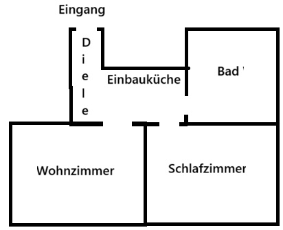 Gesamt: 2 Zimmer + offene Küche in der Diele + Bad = ca. 55 qm