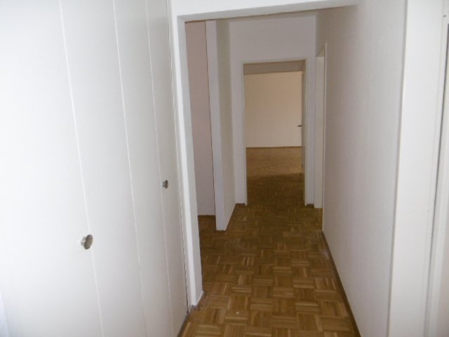 Die Küche hat einen weißen Wand-Fliesenspiegel, ein Fenster und eine Balkontüre. Die restlichen Räumlichkeiten sind mit neuerlich aufbereitetem Parkettboden (Stäbchenparkett) ausgelegt. Auch vom Wohnzimmer aus lässt sich der Süd-West-Balkon mit Blick ins unverbaute Grüne begehen. Ein Waschmaschinenanschluss befindet sich sowohl im Gäste-WC als auch in der Küche. Ein Dieleneinbauschrank steht ebenso zur Verfügung. Eine Gegensprechanlage ist installiert. An allen Fenstern sowie an den Balkontüren befinden sich Außenrollläden. Alle Lichtschalter sowie Steckdosen wurden ebenso vor wenigen Jahren erneuert.