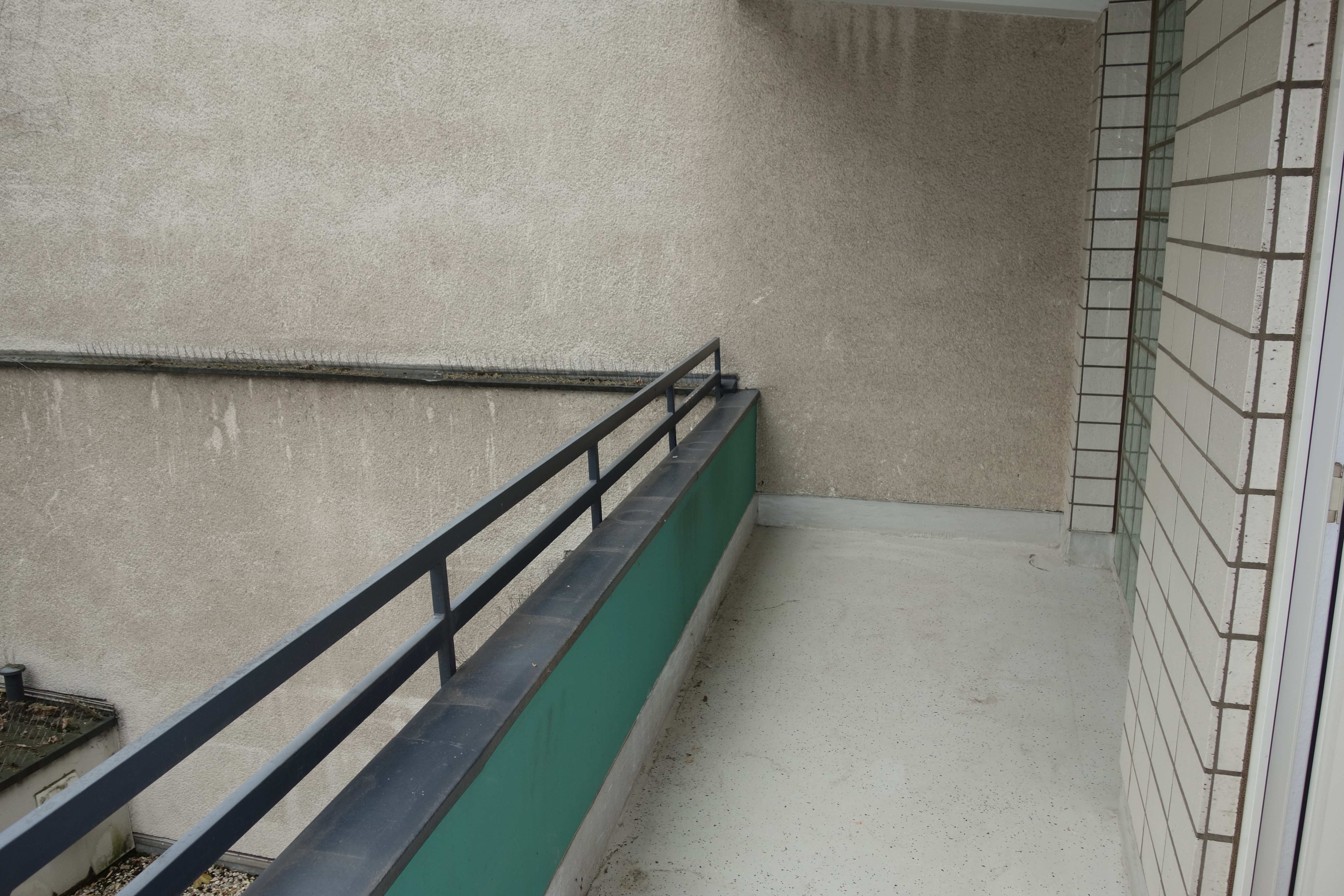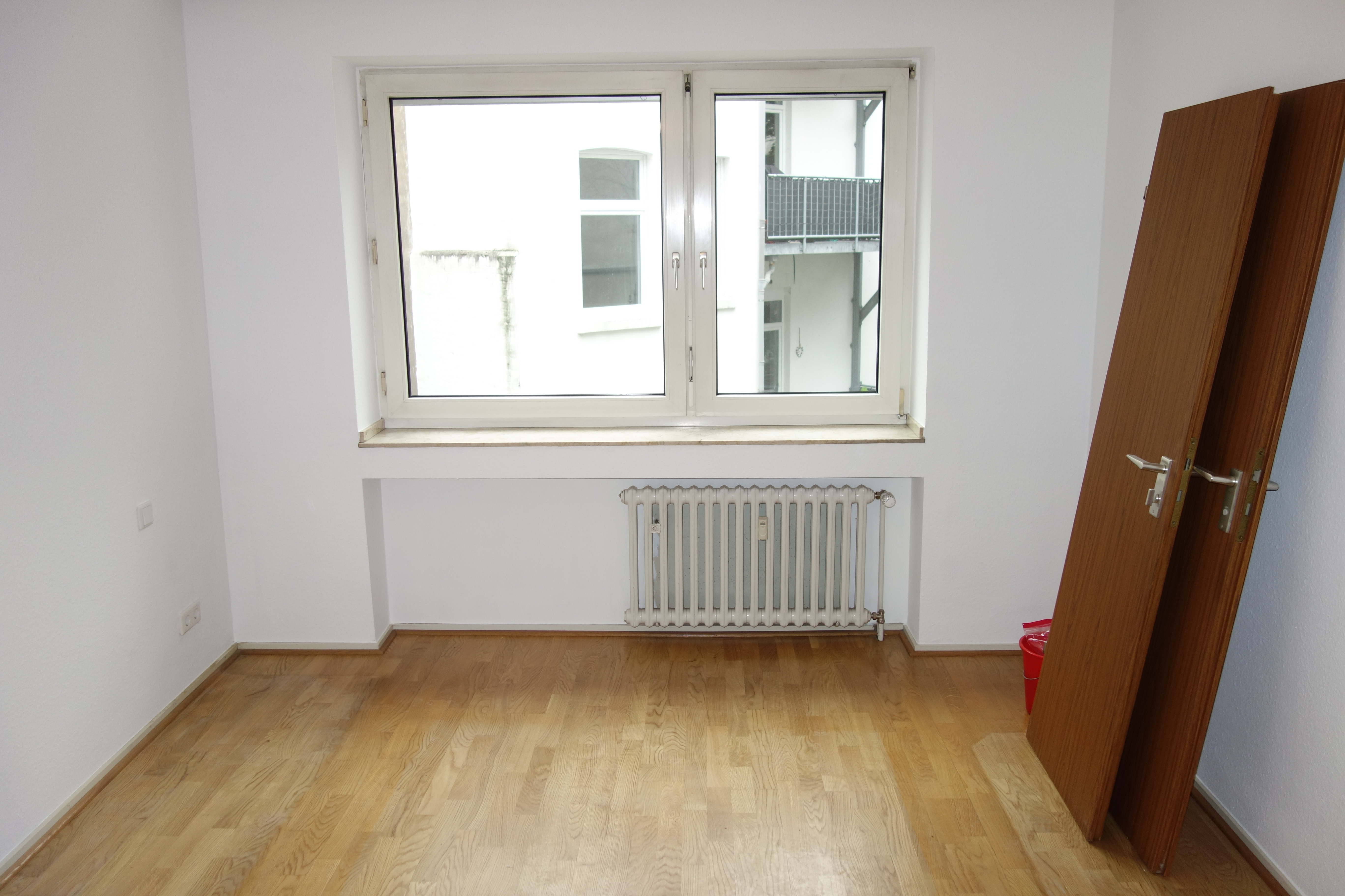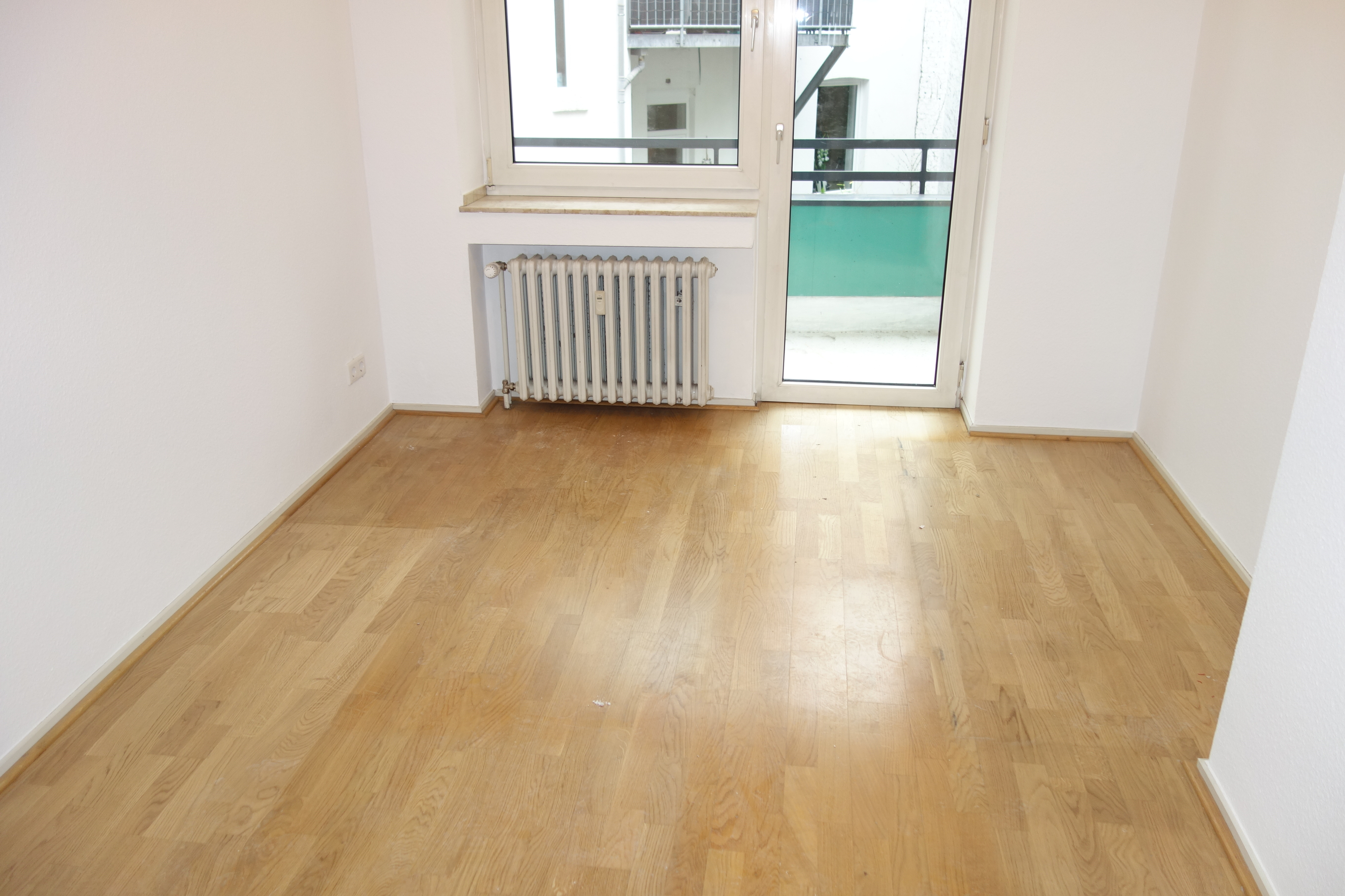 Schlafzimmer und das dritte Zimmer sind nach hinten gerichtet, genau wie der Balkon. Das Wohnzimmer verläuft zur Straßenseite.