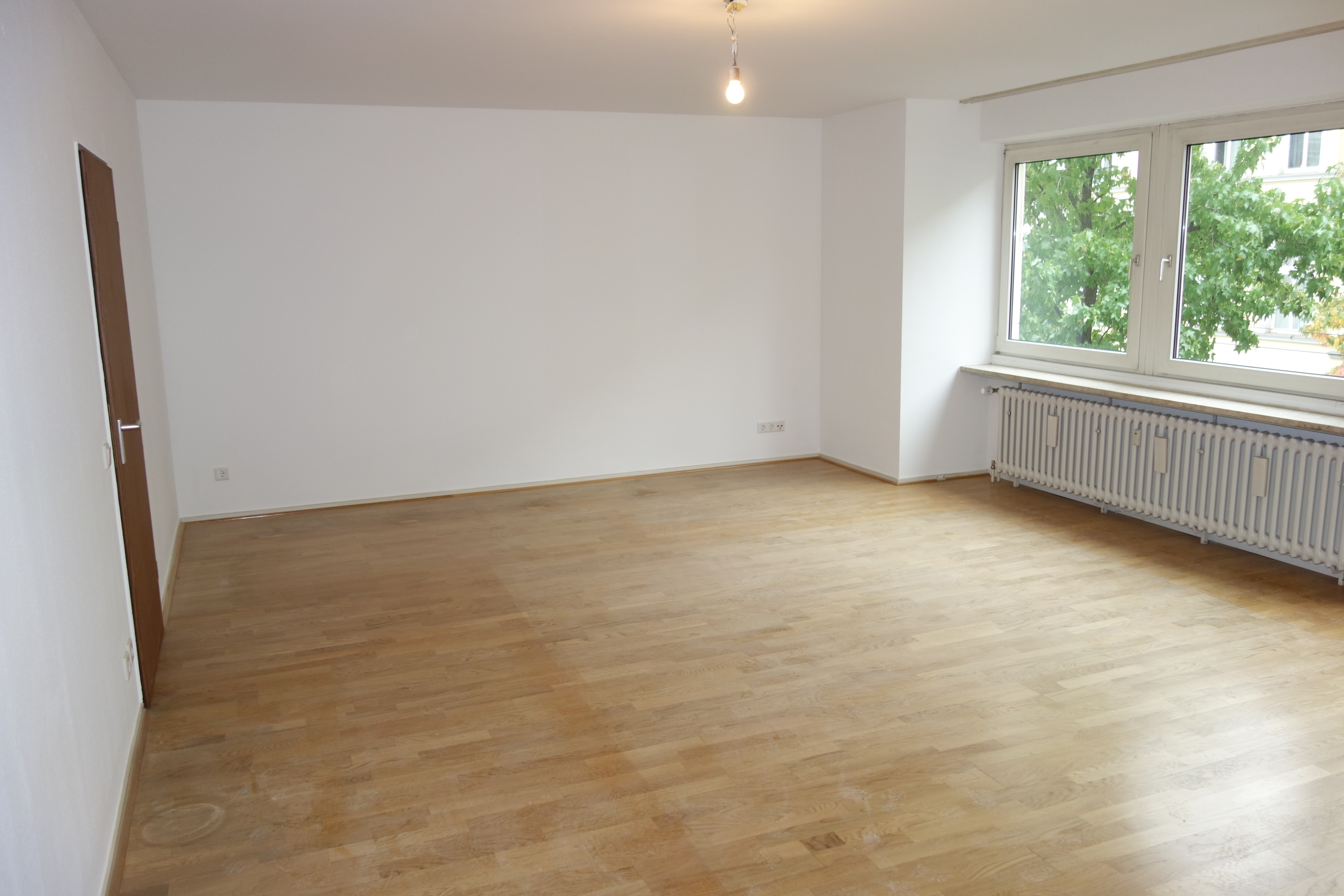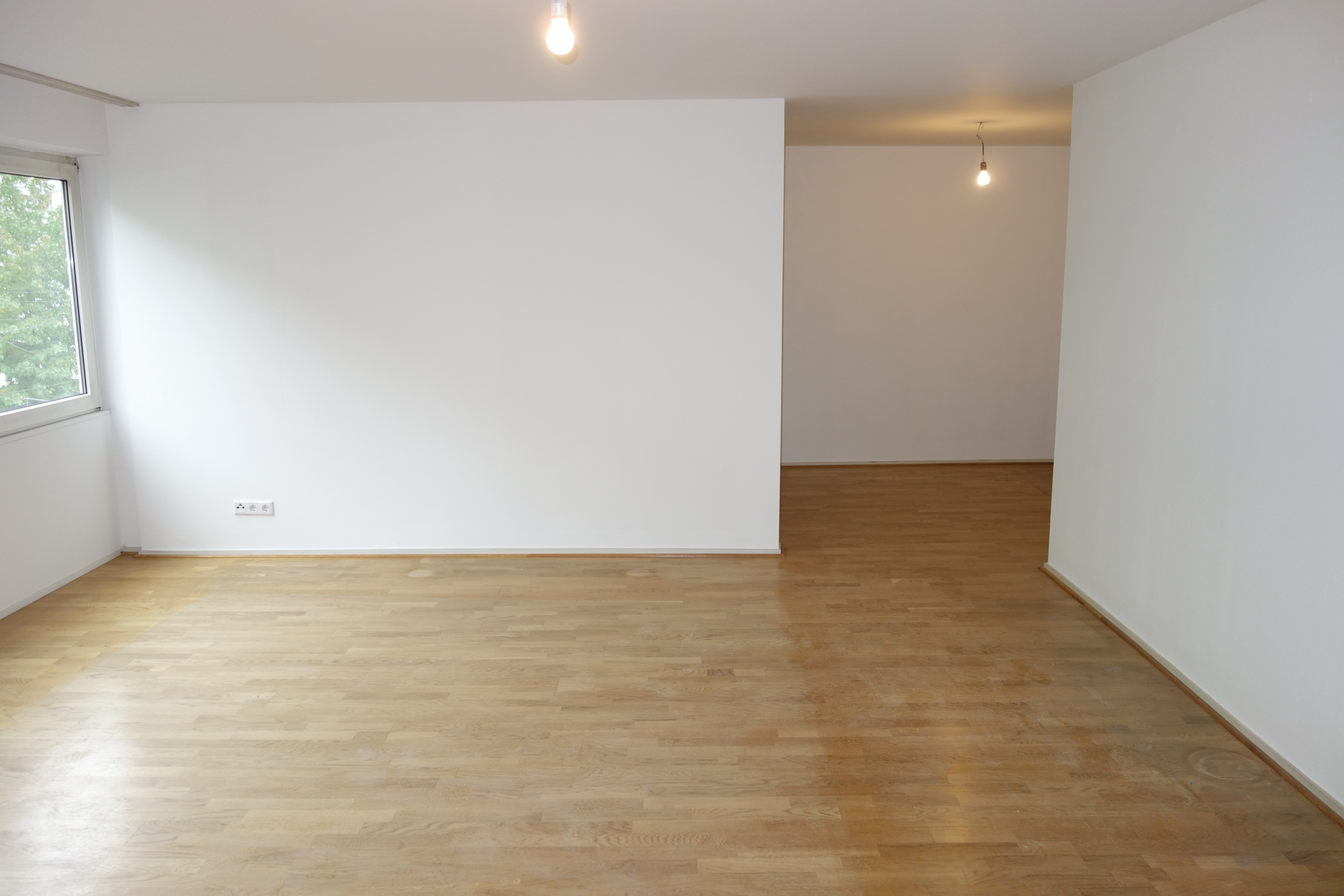 Es handelt sich hier um eine komplett renovierte und teilsanierte Wohnung. Badezimmer und Gäste-WC werden aktuell saniert und mit modernen, hellgrauen Fliesen ausgestattet. Das Badezimmer wird mit einer Badewanne (mit Duschvorrichtung) ausgestattet werden. In den restlichen Räumen der Wohnung liegt Parkettboden. Vom sehr geräumigen Wohnzimmer aus gelangt man in die Küche mit vorgebauter Essecke.