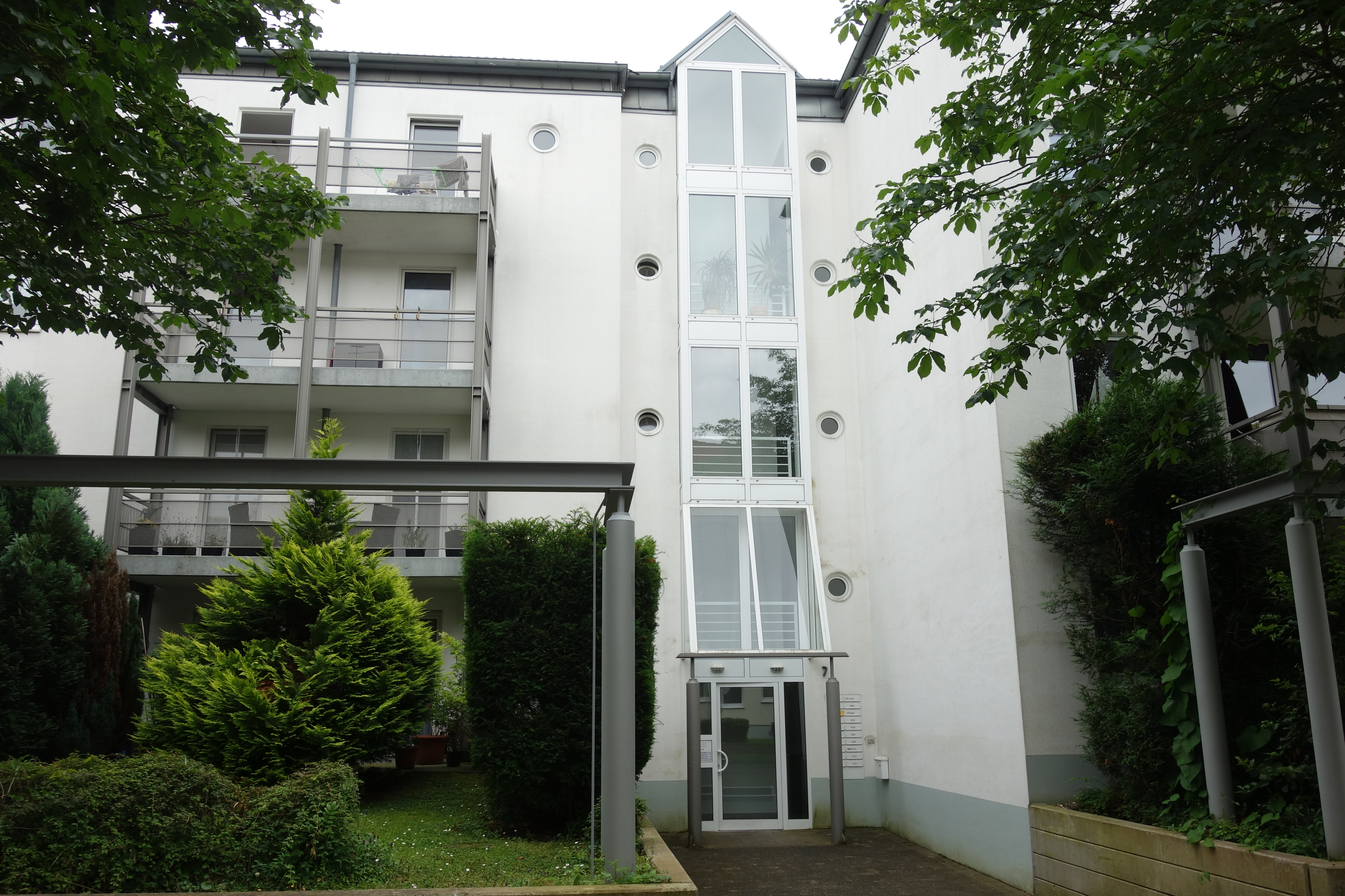 Die Wohnung befindet sich in einem absolut gepflegten Mehrfamilienhaus, welches 1990 errichtet und fortan modernisiert wurde. Die Kunststofffenster sind doppelt isoliert. Das Haus verfügt über ein Satteldach. Das sehr gepflegte Treppenhaus ist an den Wänden weiß gestrichen und es wurde Steinboden verlegt. Auf den Etagen befindet sich Teppichboden. Die Wohnung liegt im Erdgeschoss / Hochparterre, mit Aufzug. Als Heizsystem wurde eine Gas-Zentral-Heizung eingebaut. Die eigene Waschmaschine kann innerhalb der Wohnung im Badezimmer oder in der Küche aufgestellt werden. Für die Allgemeinheit gibt es zwei Fahrradkeller. Zu der Wohnung gehört ein eigener Kellerraum. Ebenfalls im Keller befindet sich ein Trockenraum mit einem Wäschetrockner (Münzzähler, kein Bargeld) für die Allgemeinheit. Die Tiefgarage kann direkt vom Haus aus betreten werden. Der Wohnung zugehörig ist ein Tiefgaragen-Einstellplatz.