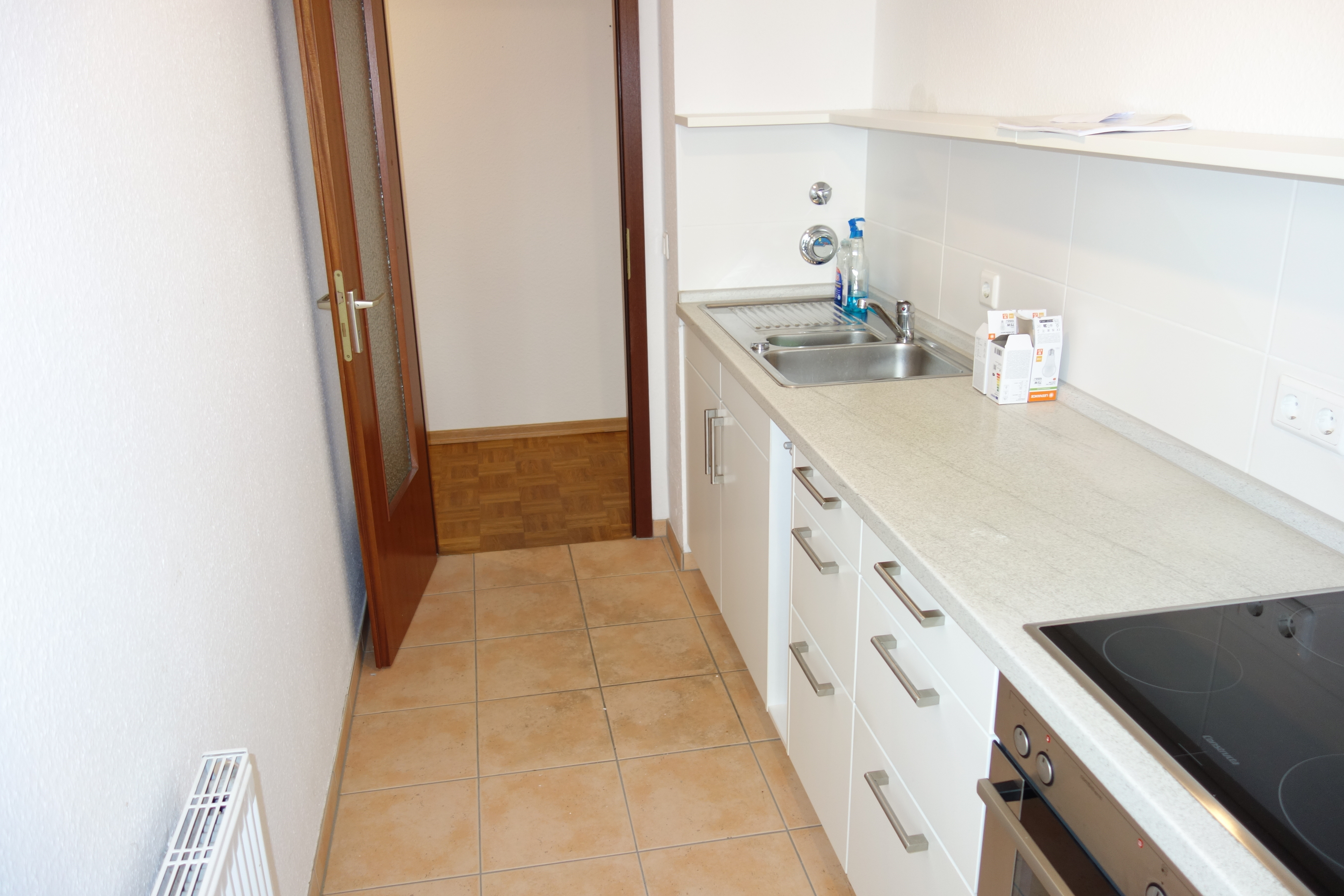 Auf Wunsch kann, muss aber natürlich nicht, eine vorhandene Einbauküche (Unterschränke, Regale, Spüle, Herd / Ofen, Kühlschrank (inkl. Gefrierfach)) für 700,00€ V.B. vom Vormieter übernommen werden.