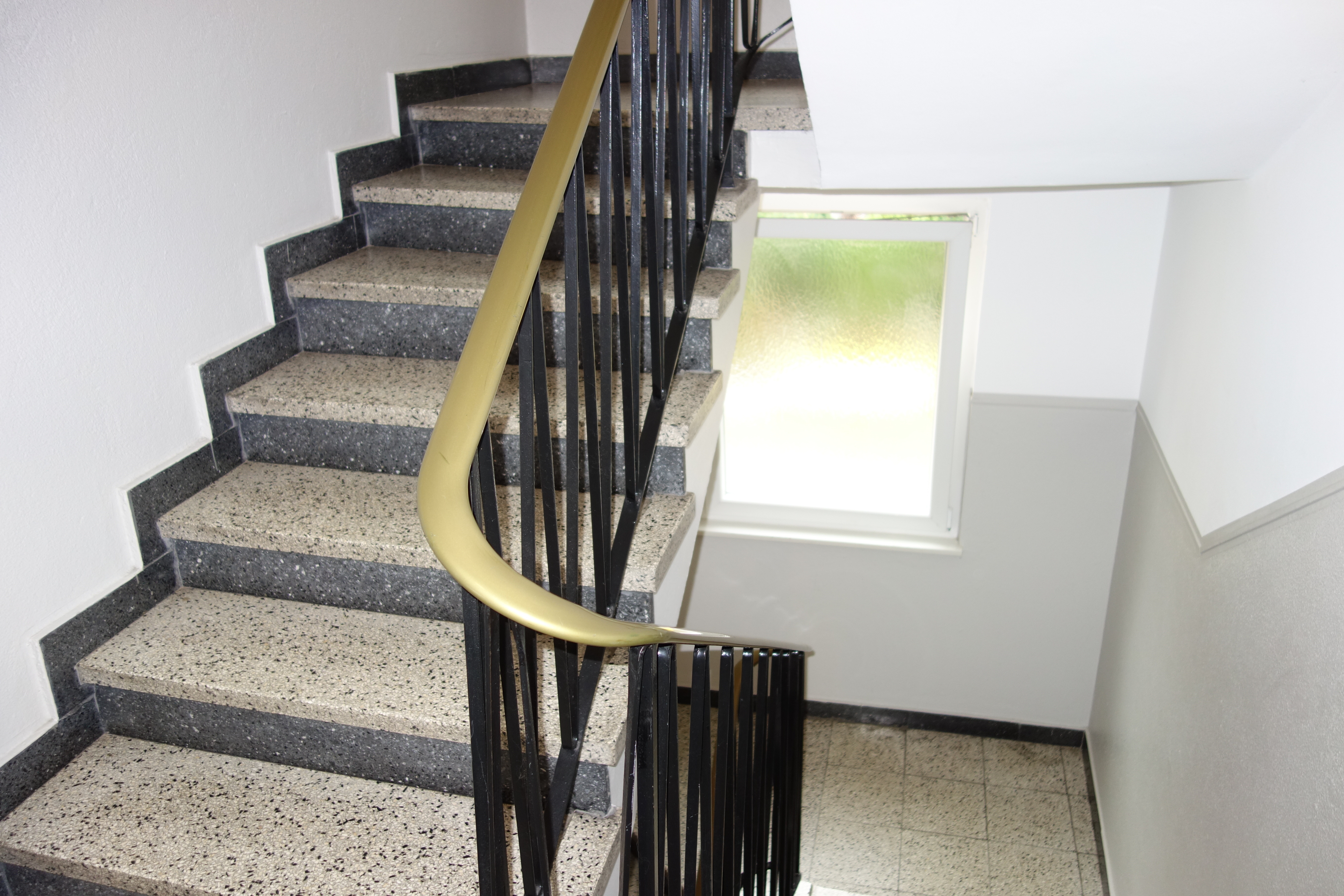 Die Wohnung befindet sich in einem sehr gepflegten Mehrfamilienhaus, welches ca. 1959 errichtet und fortan modernisiert wurde. Das Treppenhaus ist auf dem Boden mit Steinfliesen ausgestattet und an den Wänden verputzt und gestrichen. Die Kunststofffenster sind doppelt isoliert. Die Wohnung befindet sich in der 1. Etage/ohne Aufzug. Als Heizsystem wurde eine Gas-Etagen-Heizung eingebaut. Eine Gegensprechanlage ist installiert. Zu der Wohnung gehört ein eigener, geräumiger Kellerraum, in dem auch die eigenen Fahrräder abgestellt werden können. Für die Allgemeinheit gibt es einen Trockenraum im Keller.