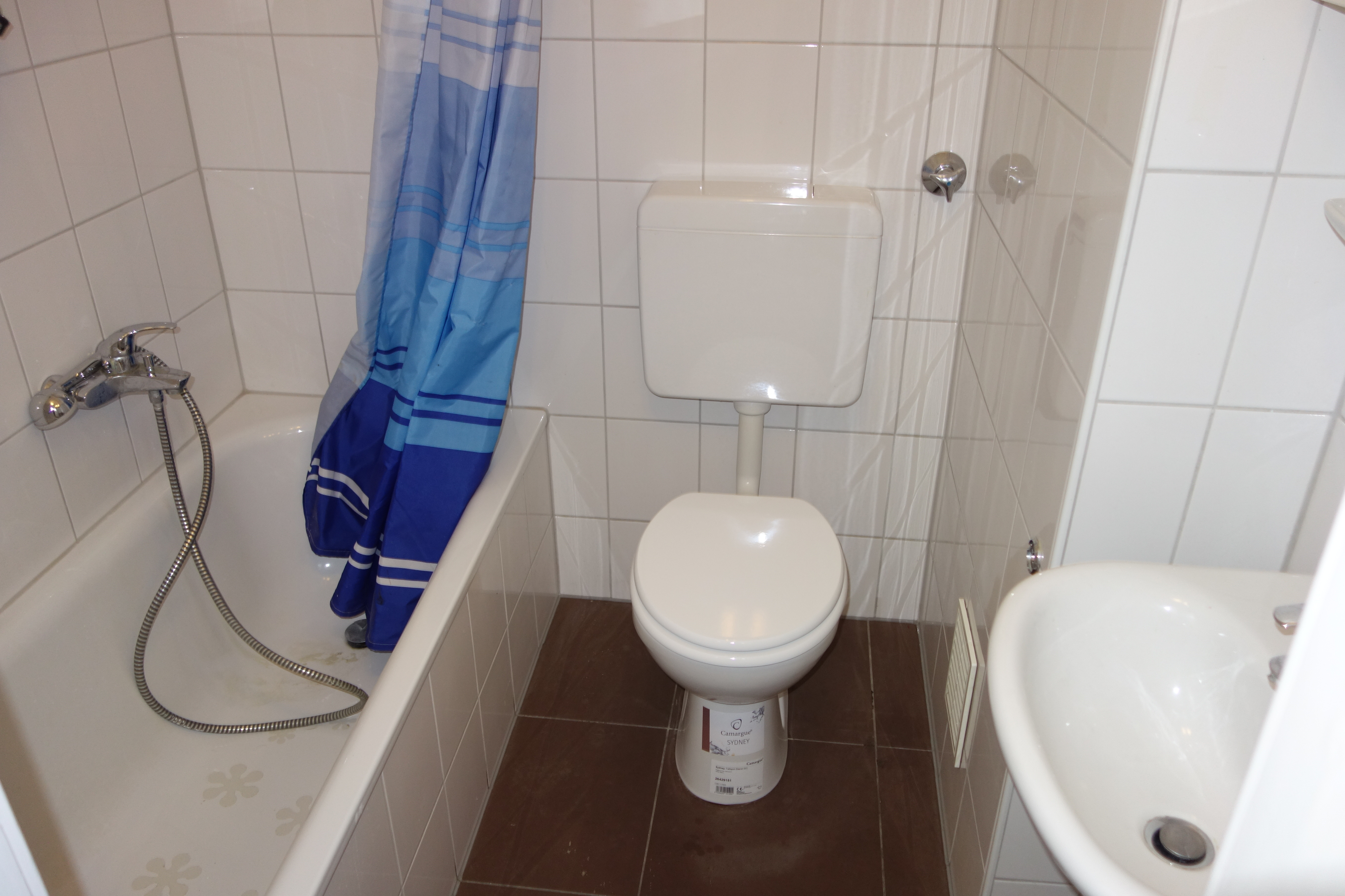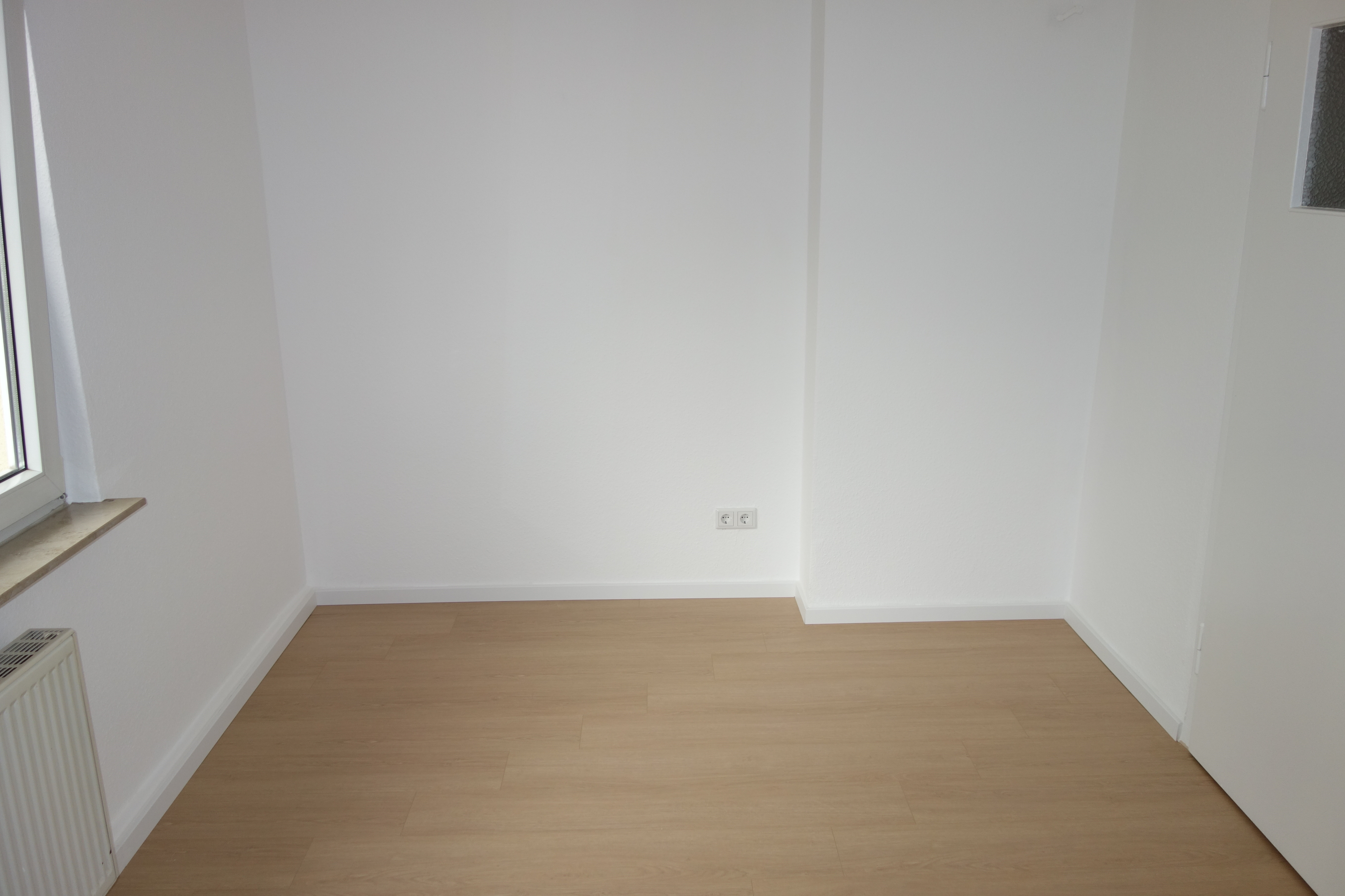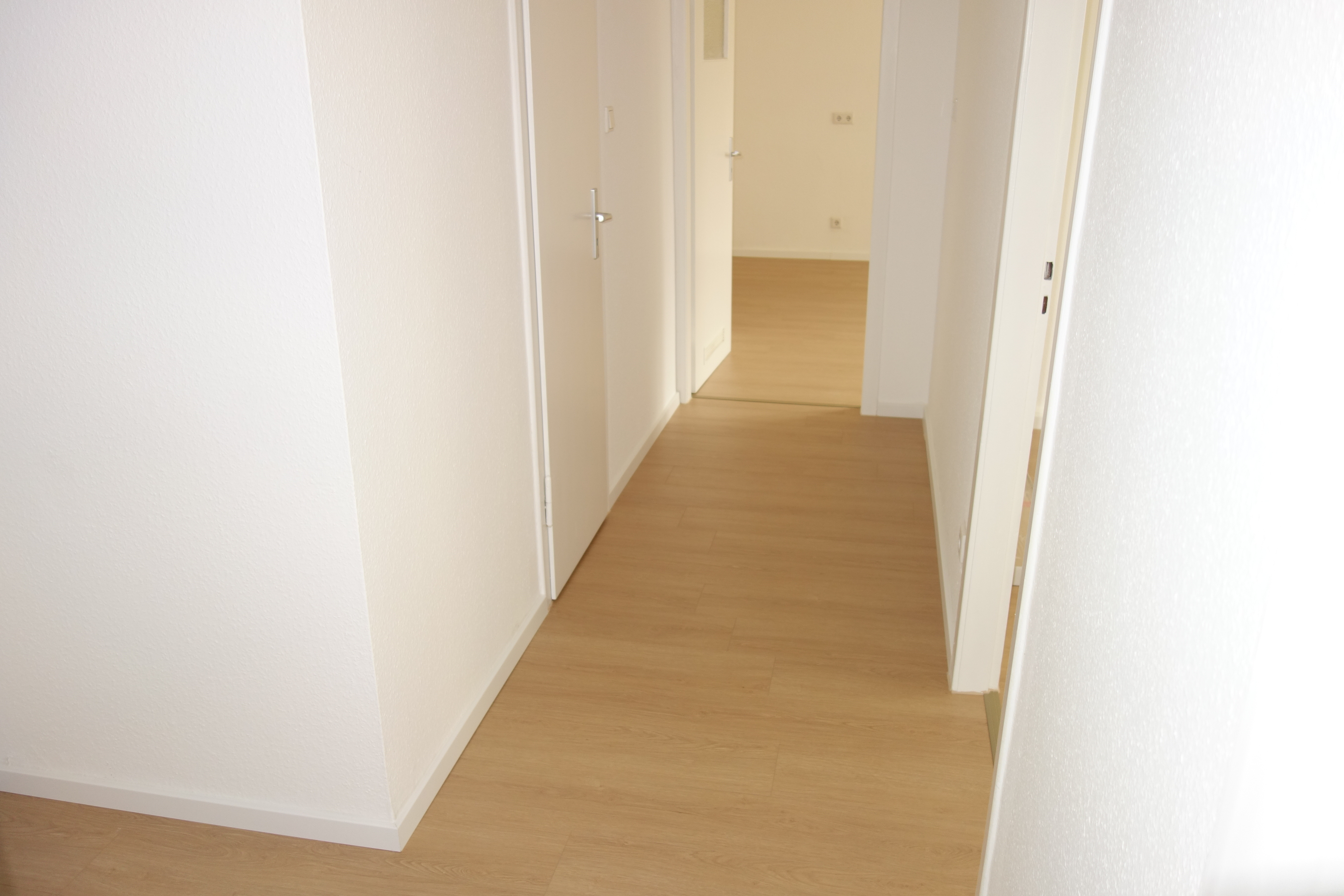 Die Wohnung ist vollständig renoviert (Decken und Wände weiß gestrichen) und teilsaniert worden. Der Boden in der kompletten Wohnung wurde mit neuem Lamainatboden ausgelegt. Das Bad ist auf dem Boden dunkel und an den Wänden weiß gefliest. Die Toilette ist erneuert worden.