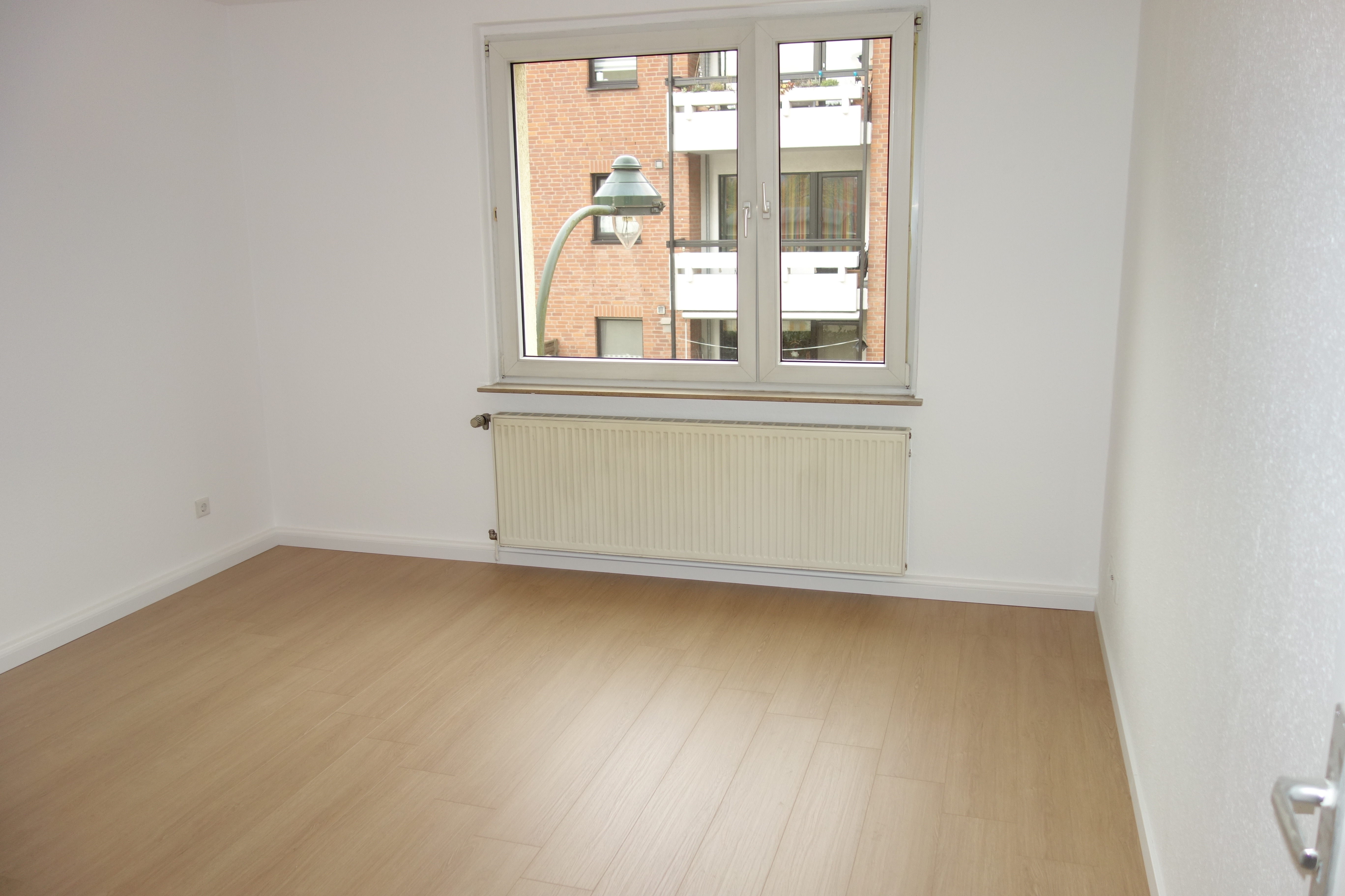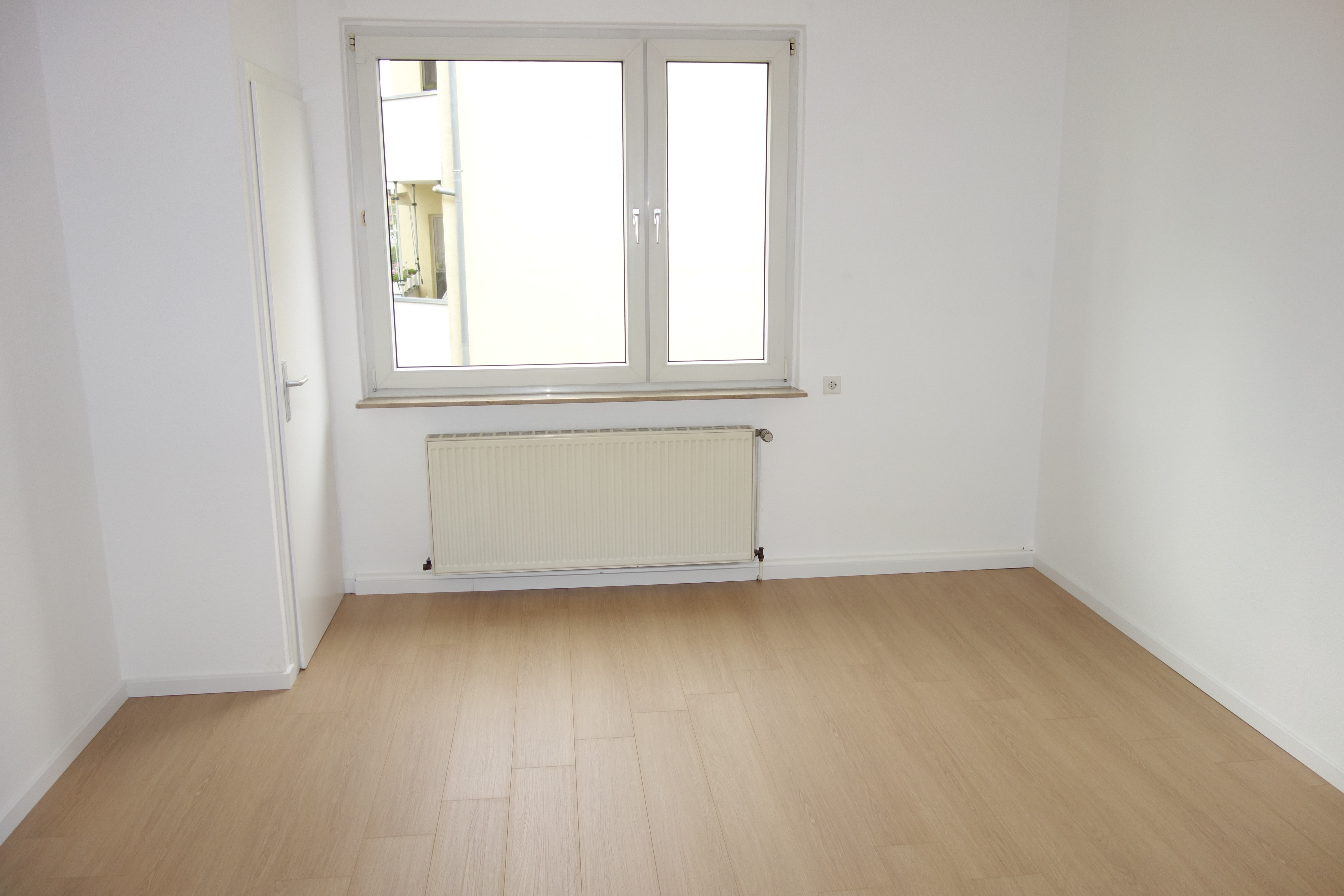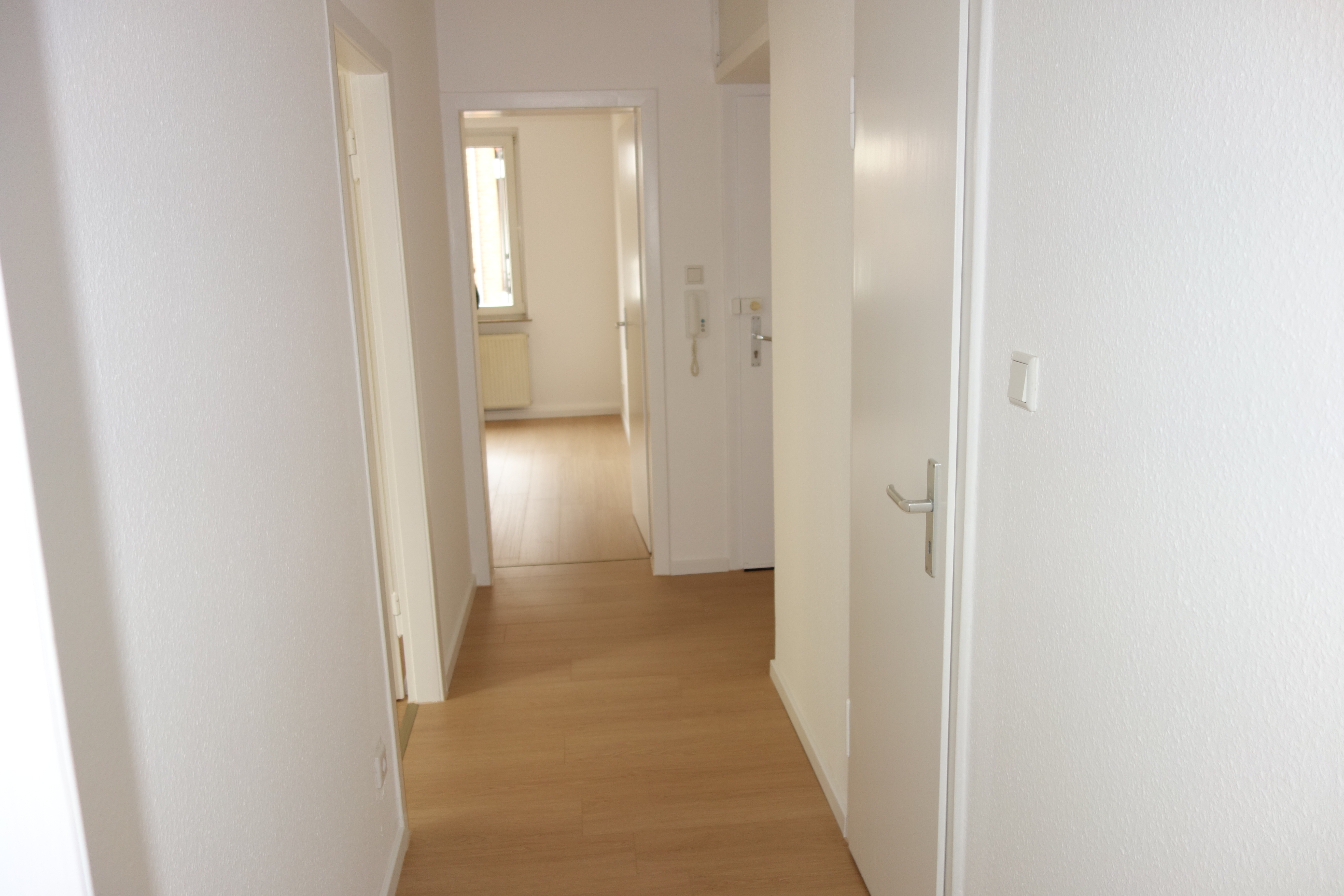 Die Wohnung ist vollständig renoviert (Decken und Wände weiß gestrichen) und teilsaniert worden. Der Boden in der kompletten Wohnung wurde mit neuem Lamainatboden ausgelegt. Das Bad ist auf dem Boden dunkel und an den Wänden weiß gefliest. Die Toilette ist erneuert worden.