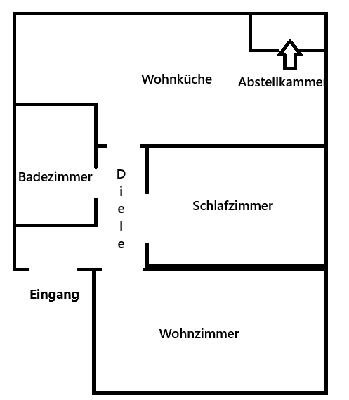 Gesamt: 2 Zimmer + Wohnküche + Diele + Bad = ca. 54 qm