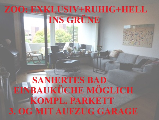 ZOO: EXKLUSIV+RUHIG+HELL INS GRÜNE SANIERTES BAD KOMPL. PARKETT EINBAUKÜCHE MÖGL. GARAGE 3.OG/AUFZUG