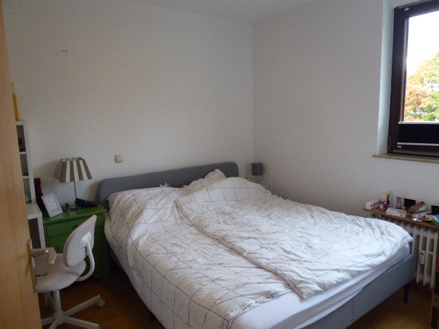 Es handelt sich hier um eine sehr moderne, sanierte Wohnung in ruhiger Lage mit Ausblick ins Grüne. Das sanierte, modern weiß geflieste Badezimmer hat eine große, bodentiefe Dusche. Die halboffene Küche zum Wohnzimmer ist gefliest. Hier kann (muss natürich nicht) von den Vormietern für € 1.500,00 übernommen werden (Kühlschrank, Spülmaschine und vier Monate altem Ceranfeld). Weiteres Mobilar kann auch komplett oder teilweise oder gar nicht übernommen werden: siehe "Fotos"!. In den restlichen Räumlichkeiten wurde Parkett velegt. In der Diele befindet sich ein zweckmäßiger, großer Einbauschrank. Eine Gegensprechanlage ist installiert. Die Wohnung wird unrenoviert jedoch in einem sehr gut erhaltenen Zustand übergeben und kann ab sofort oder später gem. Absprache angemietet werden. Prägnant ist das große Wohnzimmer mit dem großen Balkon und der Aussicht ins Grüne.