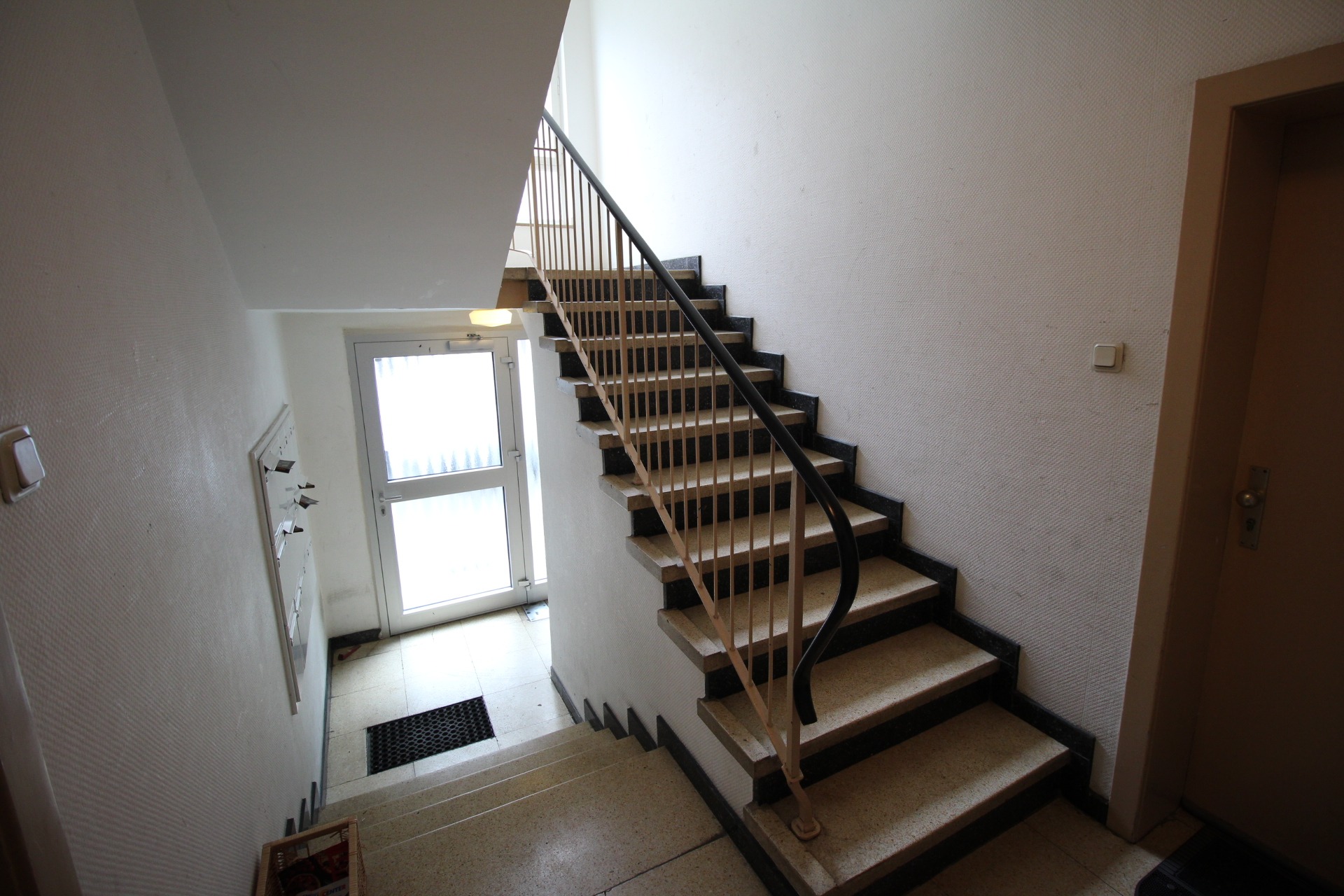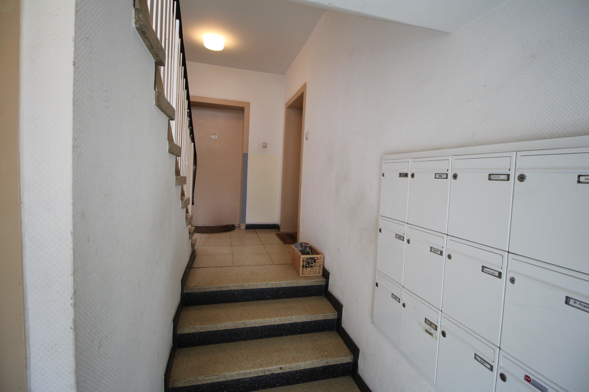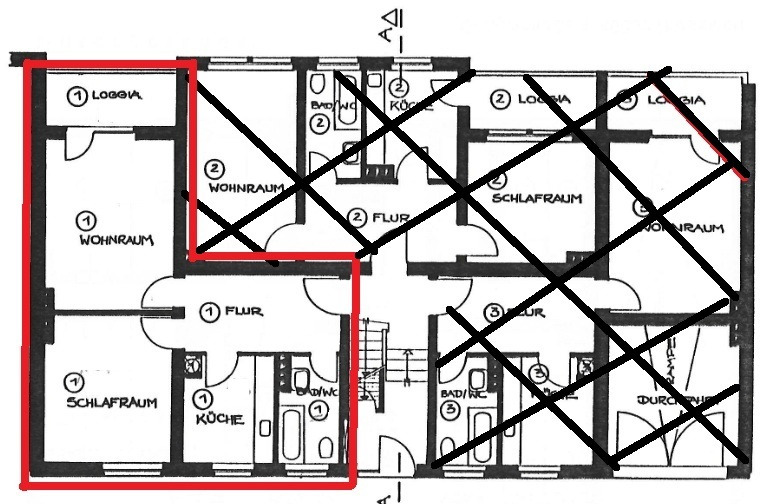 Bei den Ausführungen haben wir auf überschwängliche Beschreibungen verzichtet und uns stattdessen darauf beschränkt, eine möglichst objektive Sichtweise zugrunde zu legen, um einen realitätsnahen ersten Eindruck zu vermitteln. Dies ist erfahrungsgemäß im Interesse aller Beteiligten. Die Wohnung befindet sich in einem sehr gepflegten Mehrfamilienhaus, mit neuem Satteldach, 4,5-geschossig, welches ca. 1954 auf einem 504-qm-großen Grundstück errichtet wurde und sich in einem absolut zeitgemäßen Zustand befindet. Die Eigentümergemeinschaft setzt sich aus insgesamt 15 Wohneinheiten (kein Gewerbe) und fünf Garagen im Innenhof zusammen, welche derzeit vermietet sind. Der erwerbenden Wohnung ist keine zugeordnet. Die Fassade ist grob verputzt/gestrichen. Das mit Steinbodenplatten ausgelegte Treppenhaus ist an den Wänden mit Glasfasertapete geklebt und weiß gestrichen. Die Fenster sind wurden zwischenzeitlich erneuert und sind kunststoffdoppelt isoliert. Eine Gegensprechanlage ist vorhanden. Die Wohnung liegt im Hochparterre (erhöhtes Erdgeschoss). Das Haus verfügt über keinen Aufzug. Als Heizsystem liegt eine Gas-Etagen-Heizung aus 2008 vor, die jährlich gewartet wird. Die Warmwasserversorgung erfolgt ebenso über die Gastherme.