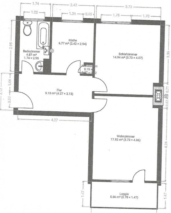 - Ausstattung des Bades Badewanne, Fenster
