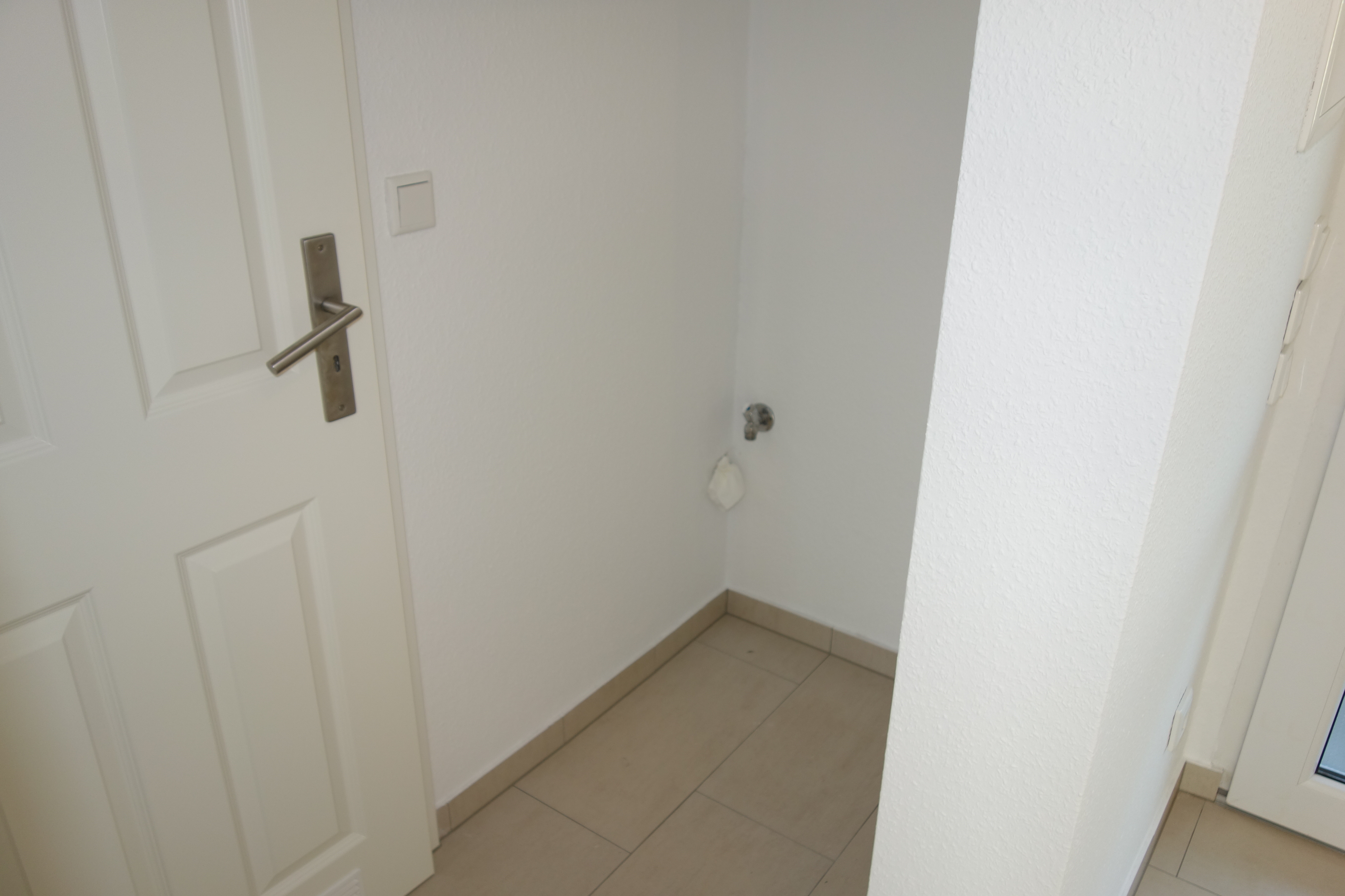 In der Diele befindet sich eine Nische, in der eine Waschmaschine und ein Wäschetrockner angeschlossen werden können. Wohn- und Schlafzimmer wurden mit einem hochwertigen, modernen Laminatboden ausgelegt.