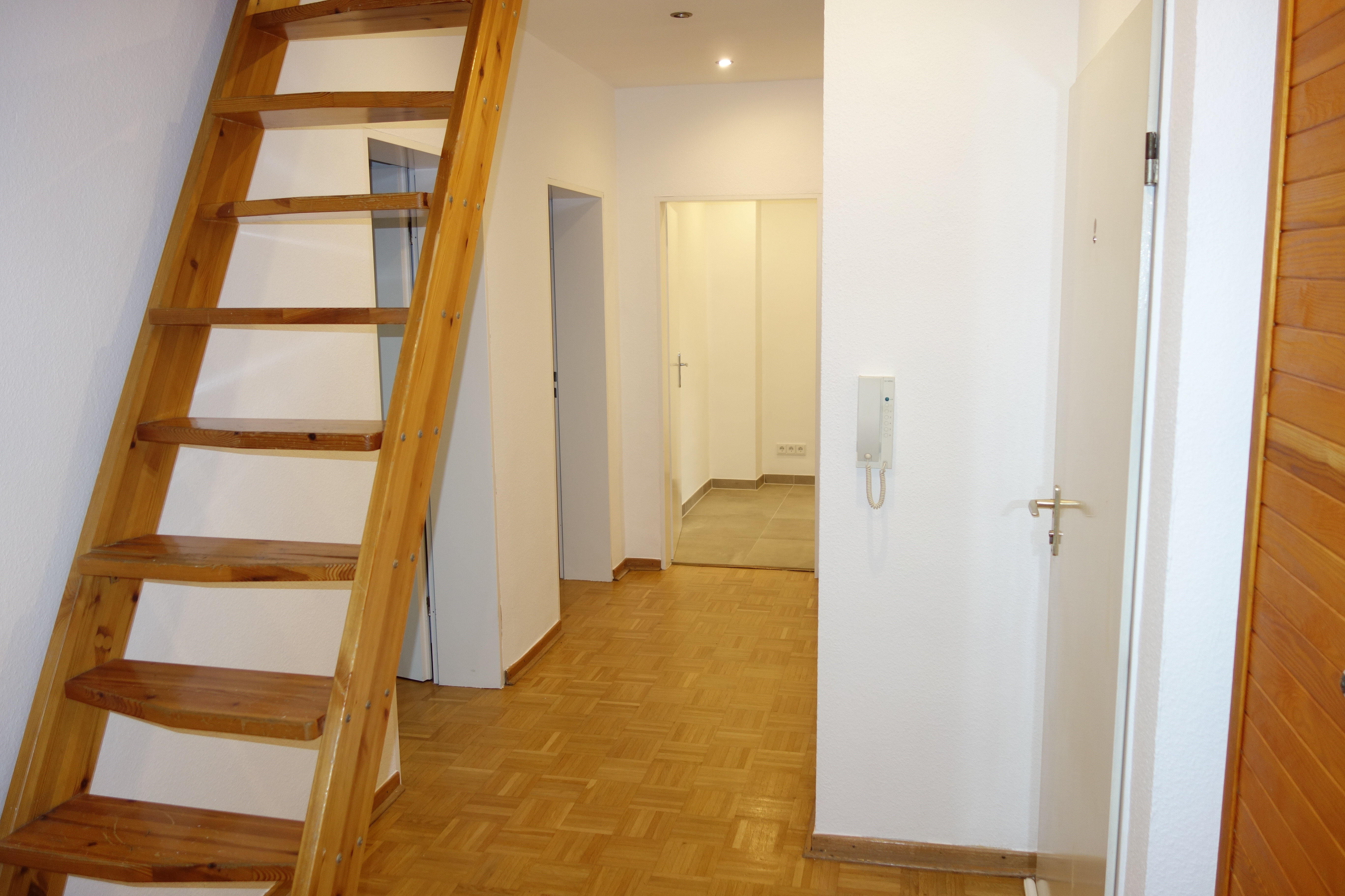 Die Räumlichkeiten in der 3. Etage sind die offizielle Wohnfläche. Die ausgebauten Räumlichkeiten im Dachgeschoss (alleiniges Sondernutzungsrecht) sind reine Nutzflächen, also keine offiziellen Wohnflächen. Die Boden-/Grundfläche beträgt hier ca. 100 qm. Es handelt sich hier um eine sehr gepflegte und im Laufe der Jahre teilsanierte Wohnung, die von den Verkäufern selbst genutzt wurde. Die Wohnung wurde dieses Jahr vollständig renoviert (Decken und Wände weiß gestrichen).