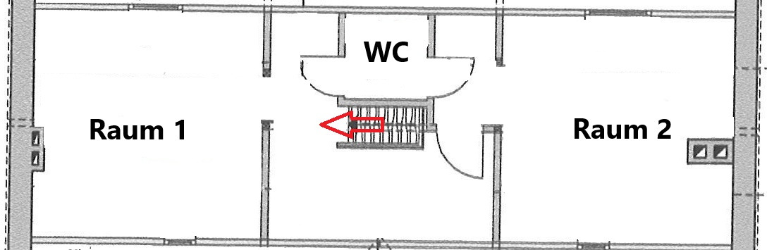 3. Etage: ca. 95 qm: Aufteilung wie folgt: 1 Wohnzimmer + 1 Schlafzimmer + 1 Kinder-/Arbeitszimmer + 1 Wohnküche + 1 Badezimmer + 1 Abstellkammer + 1 Balkon + 1 Diele, von der aus es dann zum Spitzboden geht: zwei Zimmer + 1 Flur und 1 WC. Zwischen der 2. und 3. Etage im Treppenhaus befindet sich noch eine Kammer (ehemaliges Außen-WC), wobei diese derzeit aus Brandschutzgründen nicht genutzt werden darf.