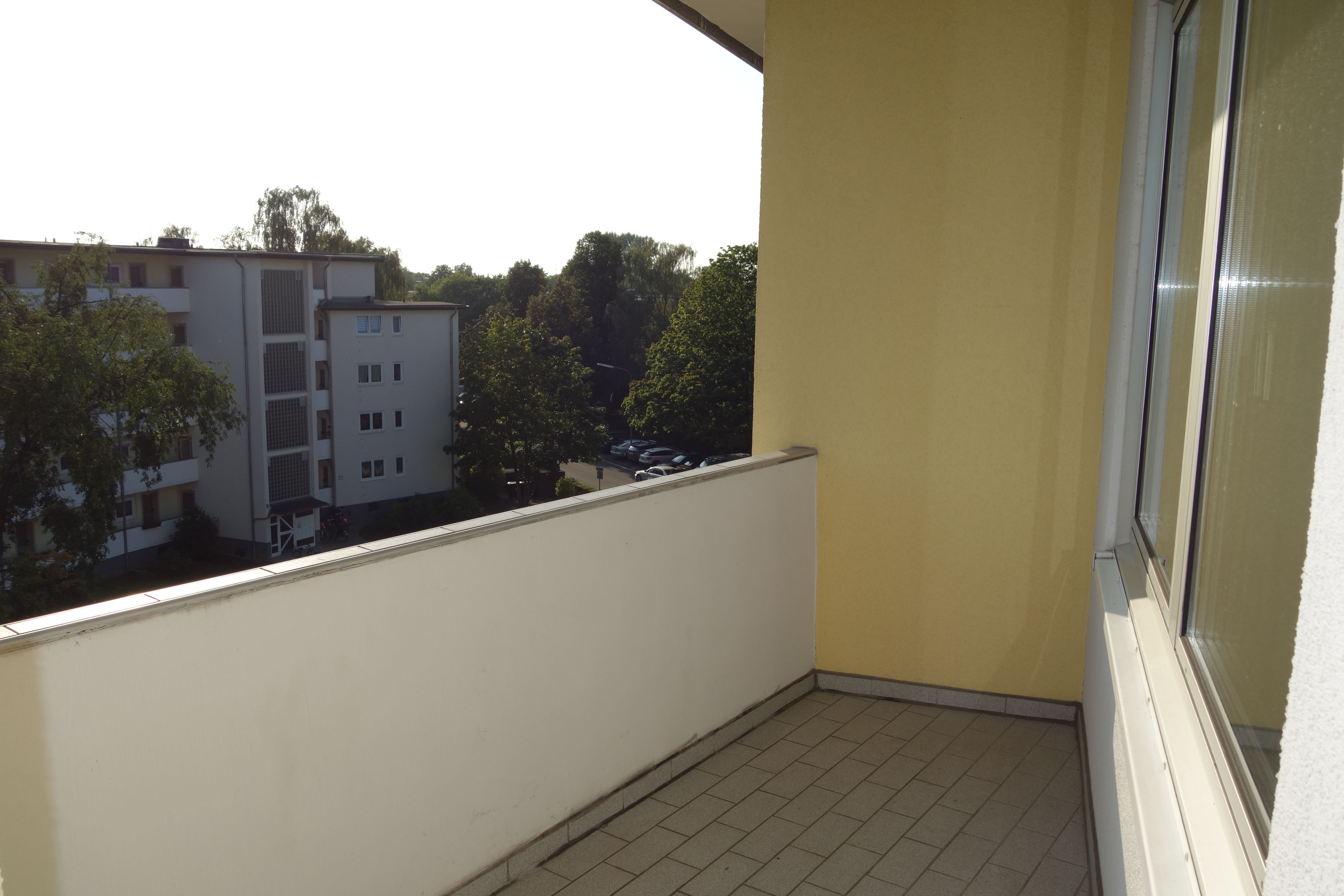 Der Süd-West-Balkon ist von dem Wohnzimmer aus begehbar.