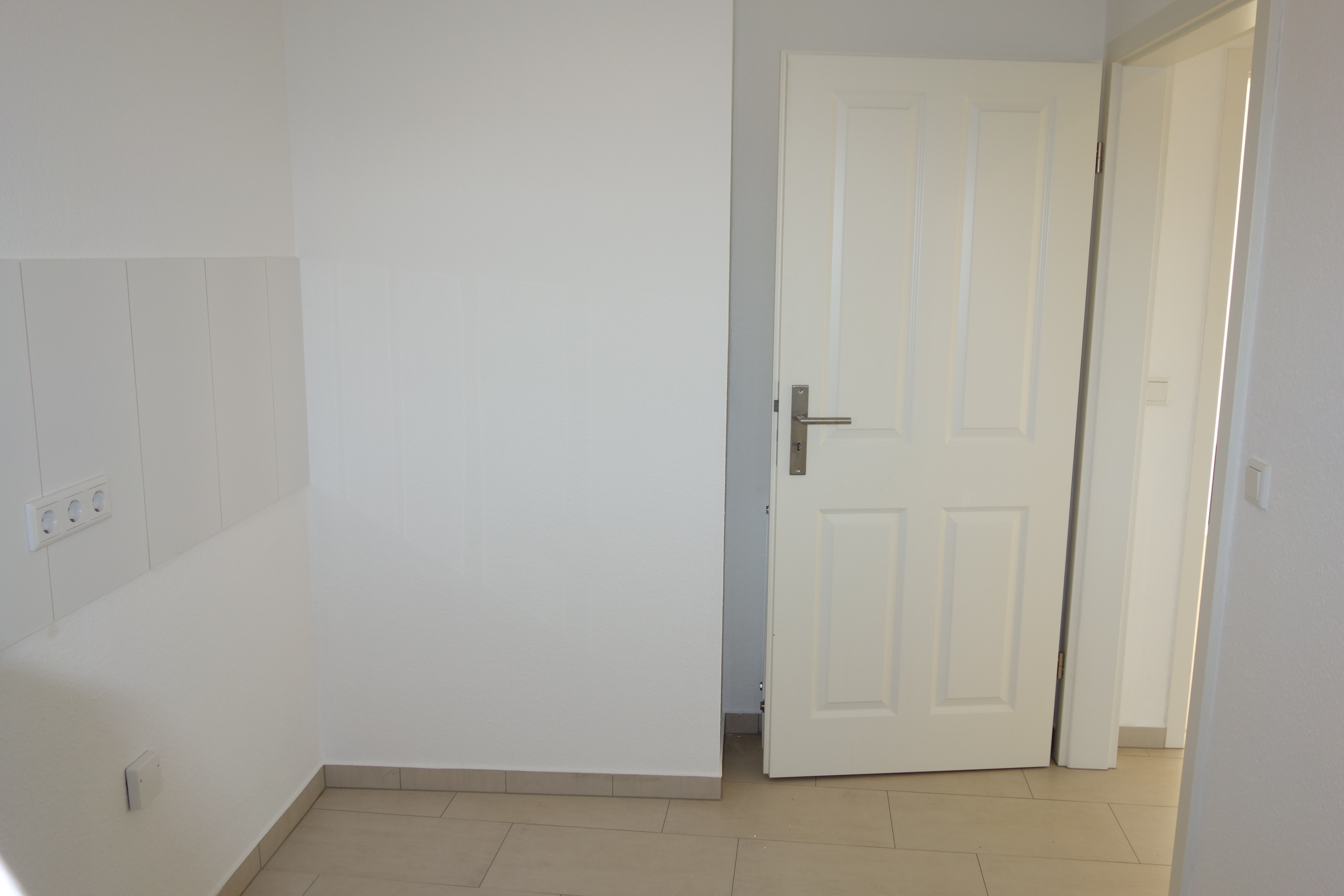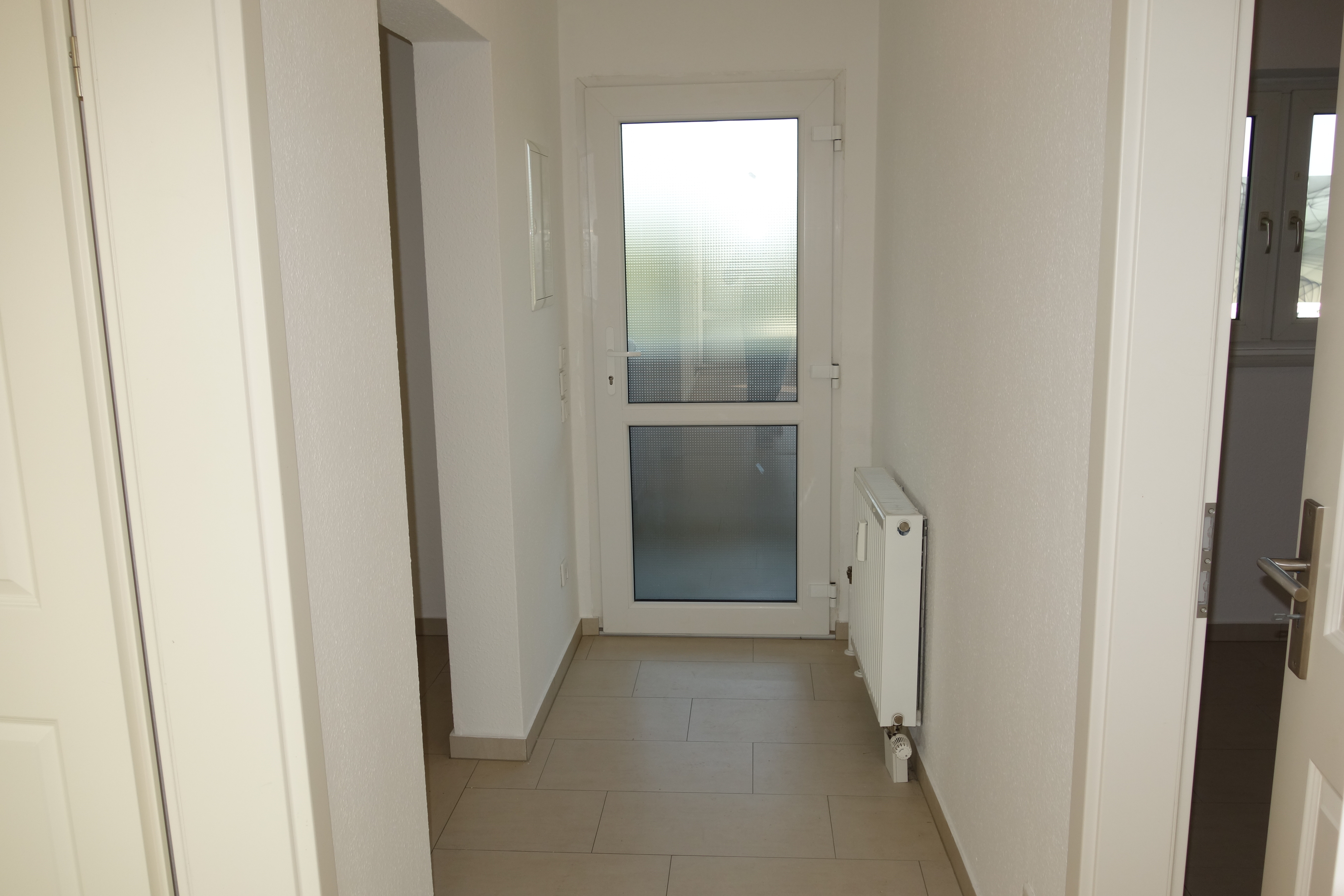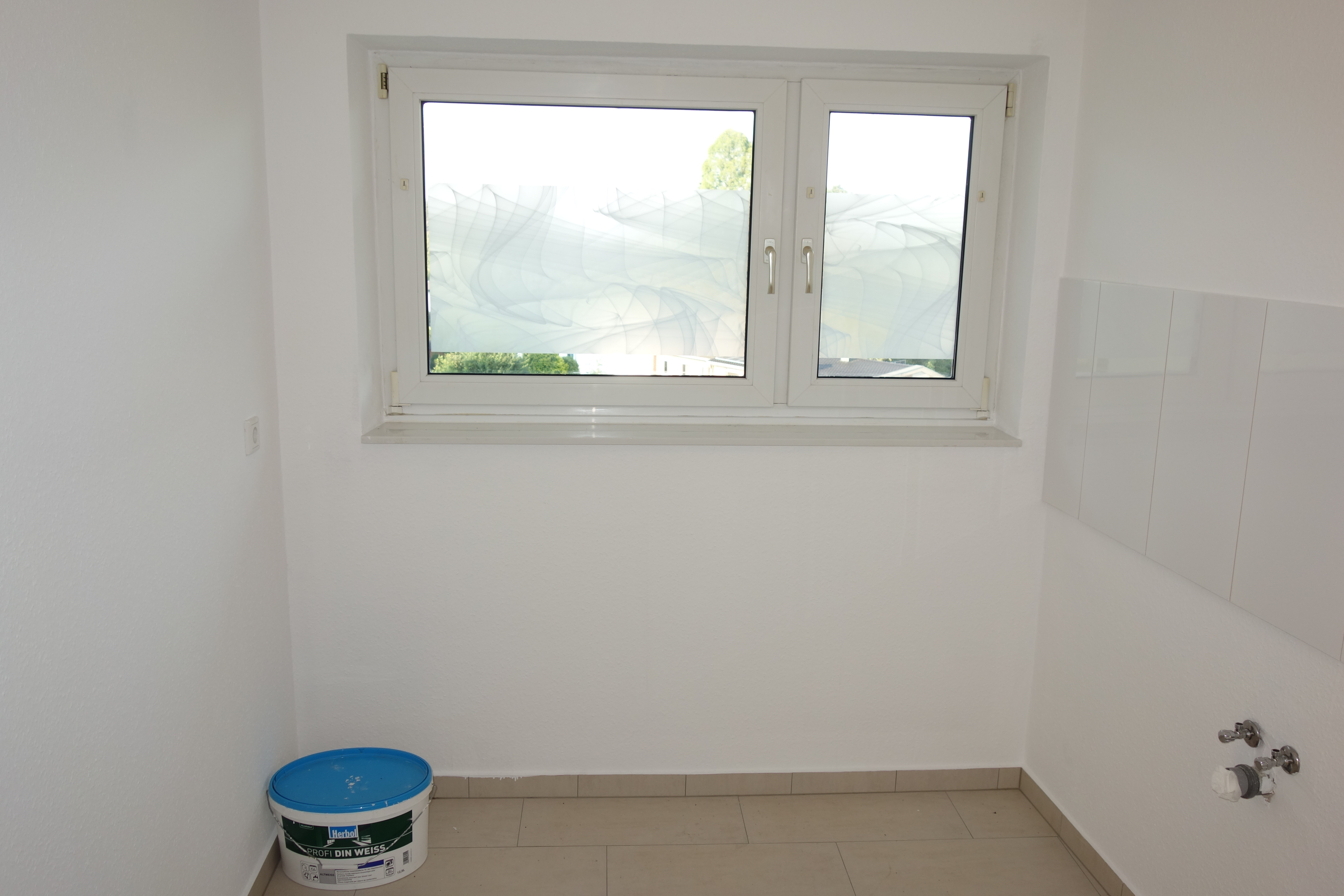 Das modernisierte Badezimmer (Wannenbad) ist mit hochwertigen weißen Wand-/ und beigen Bodenfliesen ausgestattet. Die helle Küche besitzt ein Fenster und ist, so wie auch die Diele, ebenfalls mit beigen Bodenfliesen ausgelegt.