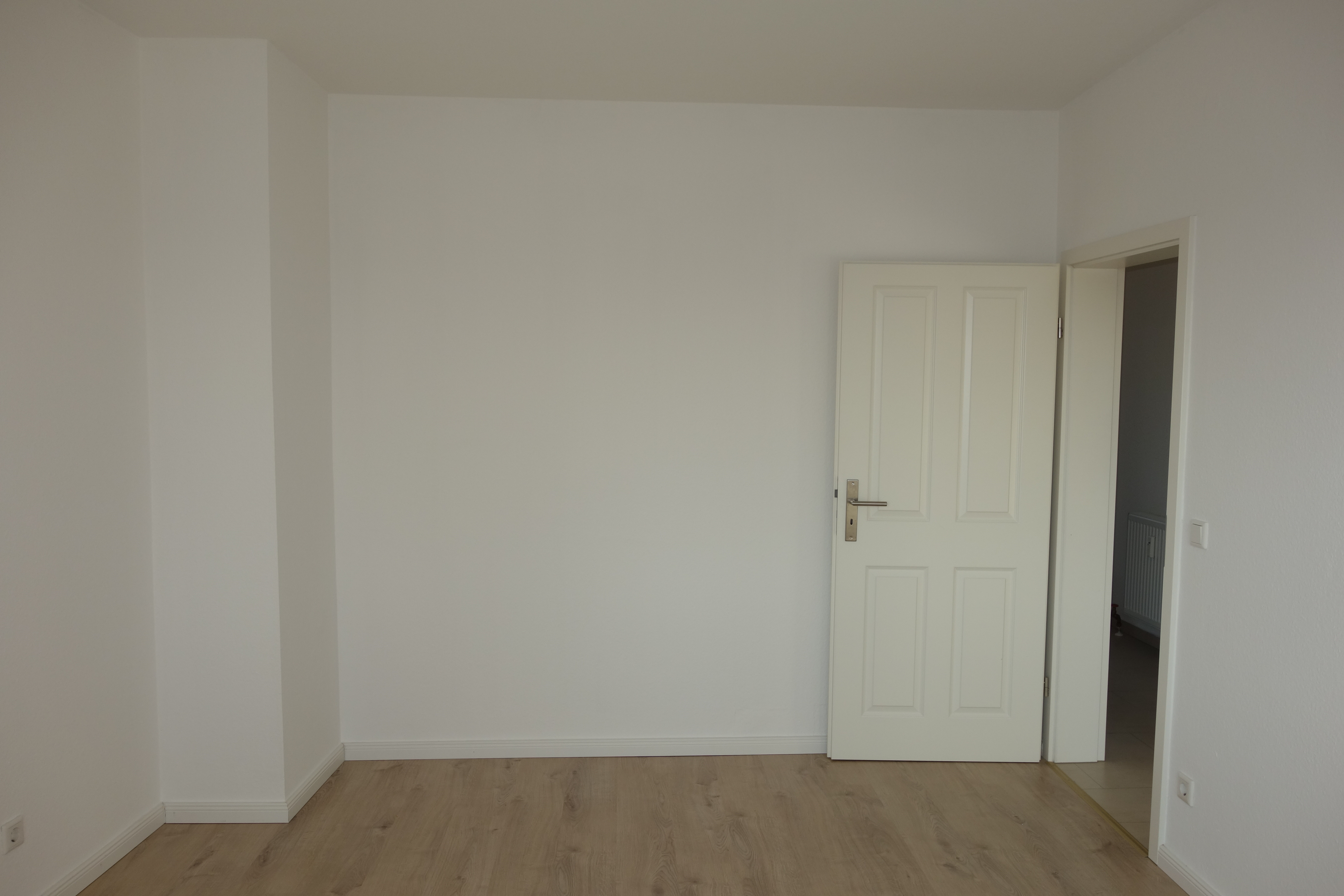 In der Diele befindet sich eine Nische, in der eine Waschmaschine und ein Wäschetrockner angeschlossen werden können. Wohn- und Schlafzimmer wurden mit einem hochwertigen, modernen Laminatboden ausgelegt.