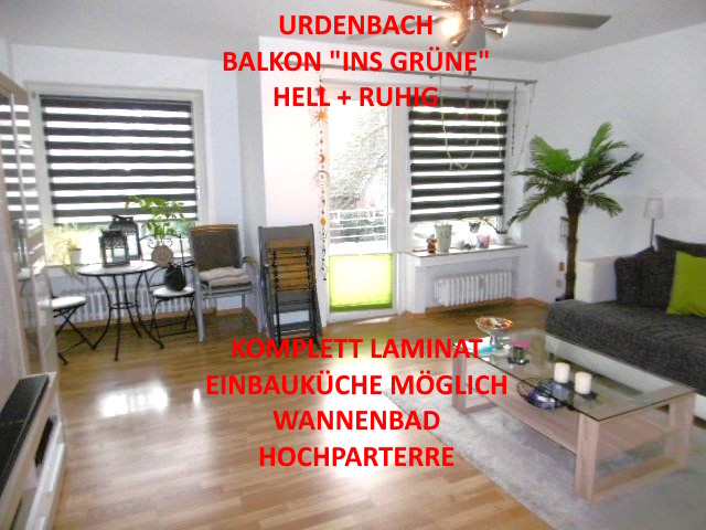 URDENBACH BALKON INS GRÜNE HELL UND RUHIG EINBAUK. MÖGL. KOMPLETT LAMINAT WANNENBAD HOCHPARTERRE