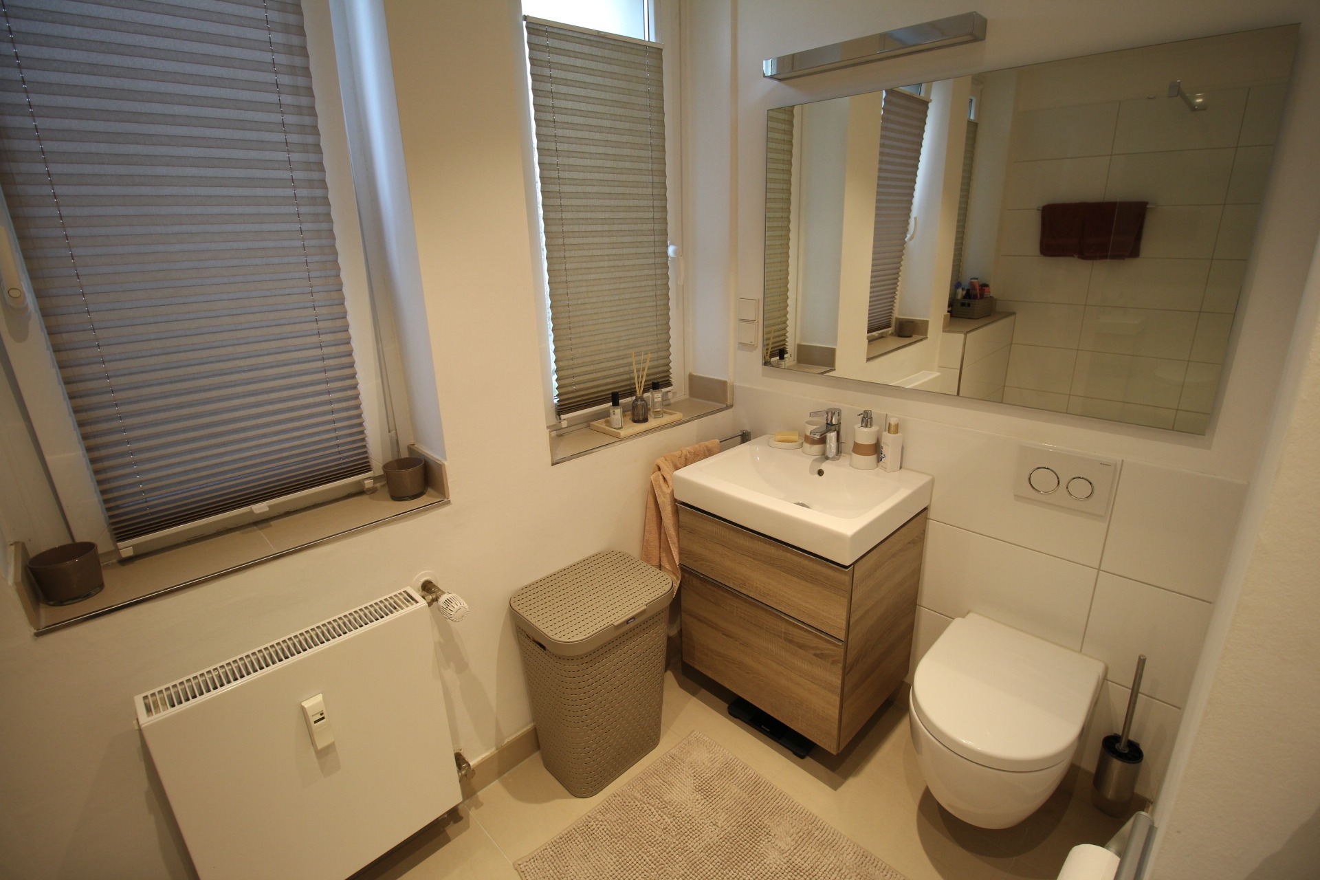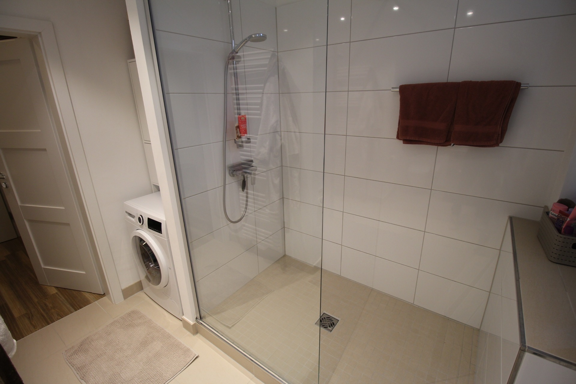 Das Badezimmer verfügt über eine Dusche mit Duschabtrennung und ist modern sowie hell gefliest. In allen weiteren Räumen wurde ein hochwertiger Vinylboden verlegt. Ein Waschmaschinenanschluss im Badezimmer ist vorhanden. Zusätzlich ist die Wohnung mit einer Gegensprechanlage ausgestattet.