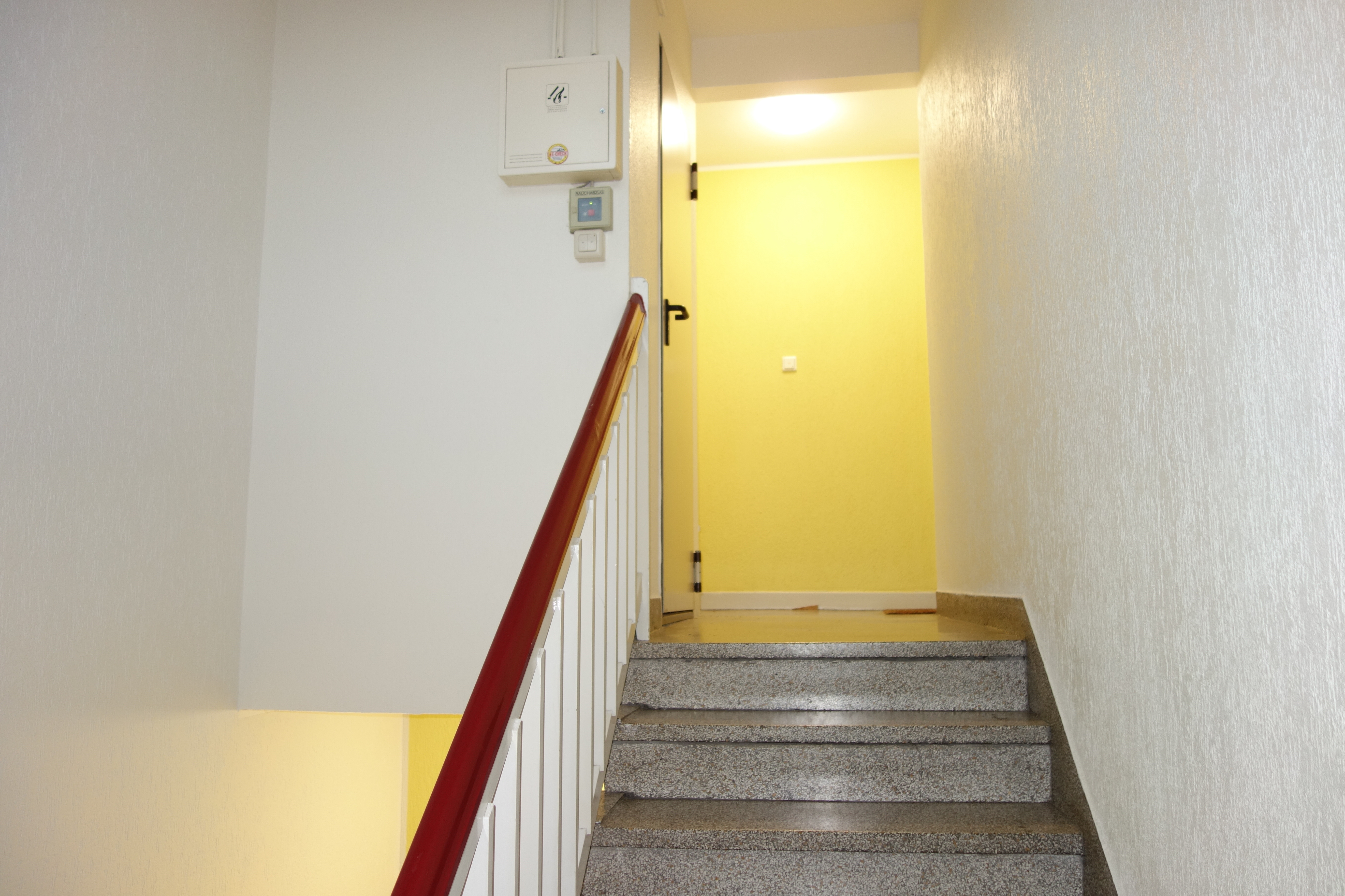Die Wohnung befindet sich in einem gepflegten 8-Parteien-Haus, welches ca. 1936 errichtet und fortan modernisiert wurde. Die Fenster sind doppelisoliert. Das Haus verfügt über ein Satteldach. Das sehr gepflegte Steinbodentreppenhaus ist an den Wänden seitlich verputzt und weiß gestrichen. Auf Wusch kann eine Gartenparzelle (ca. 60 qm) mit angemietet werden. Die Wohnung liegt in der 3. Etage, ohne Aufzug. Als Heizsystem wurde eine Gas-Etagen-Heizung eingebaut. Zu der Wohnung gehört ein eigener Kellerraum. Für die Allgemeinheit gibt es einen Trockenraum. Fahrräder können ebenso im Keller aufgestellt werden.