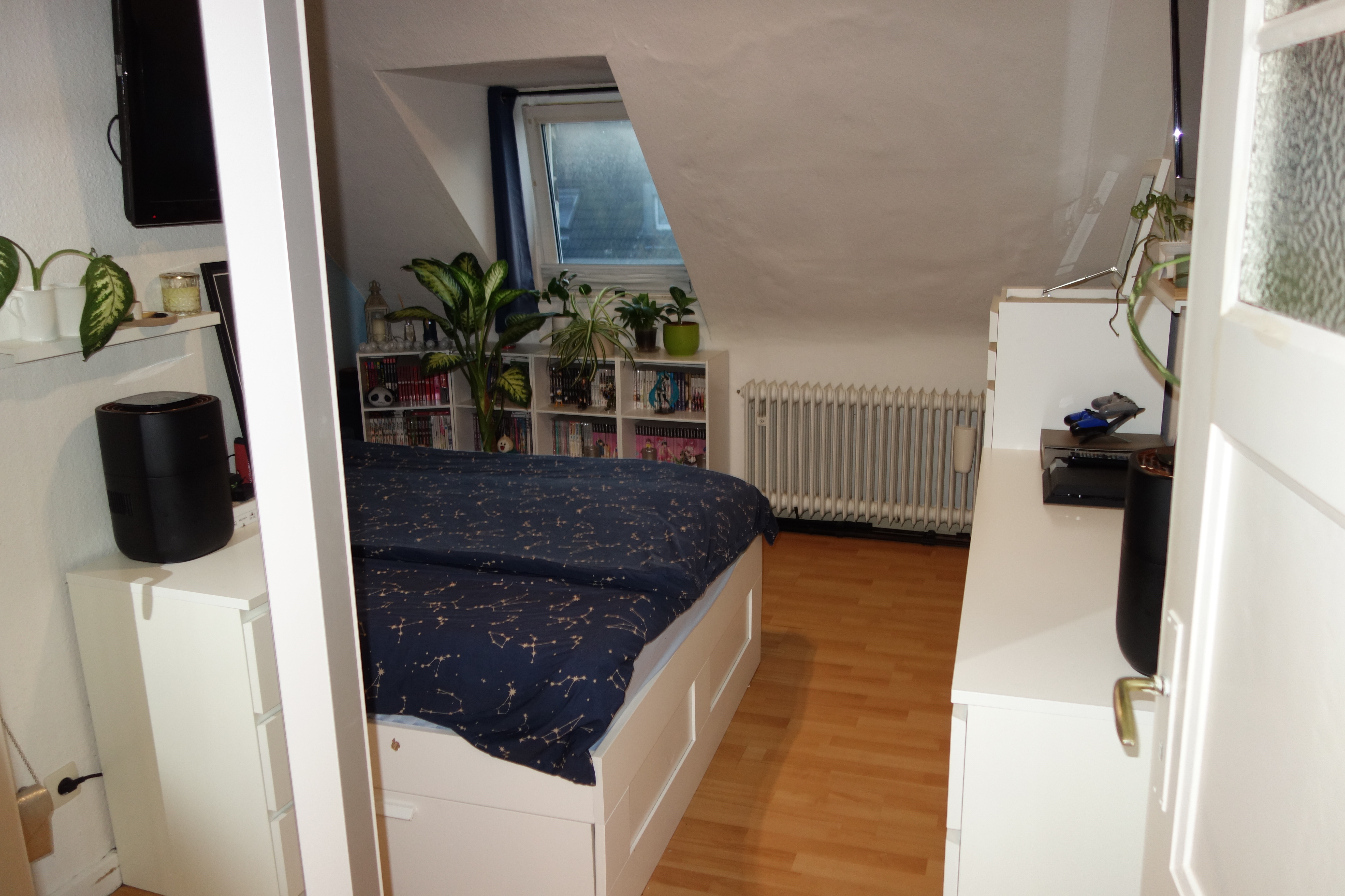 Sehr schöne, helle und gut geschnittene Wohnung, jedoch ohne Balkon und in der dritten Etage (Dachgeschoss), ohne Aufzug.