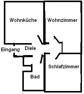 Gesamt: 2 Zimmer + große Küche + Diele + Bad = ca. 58 qm